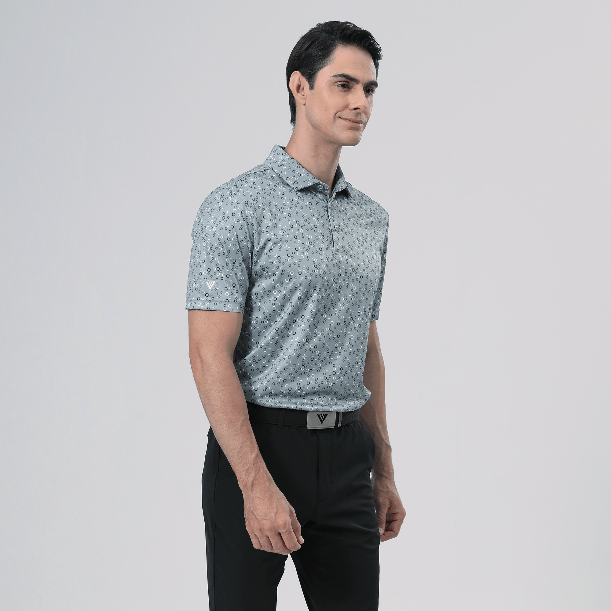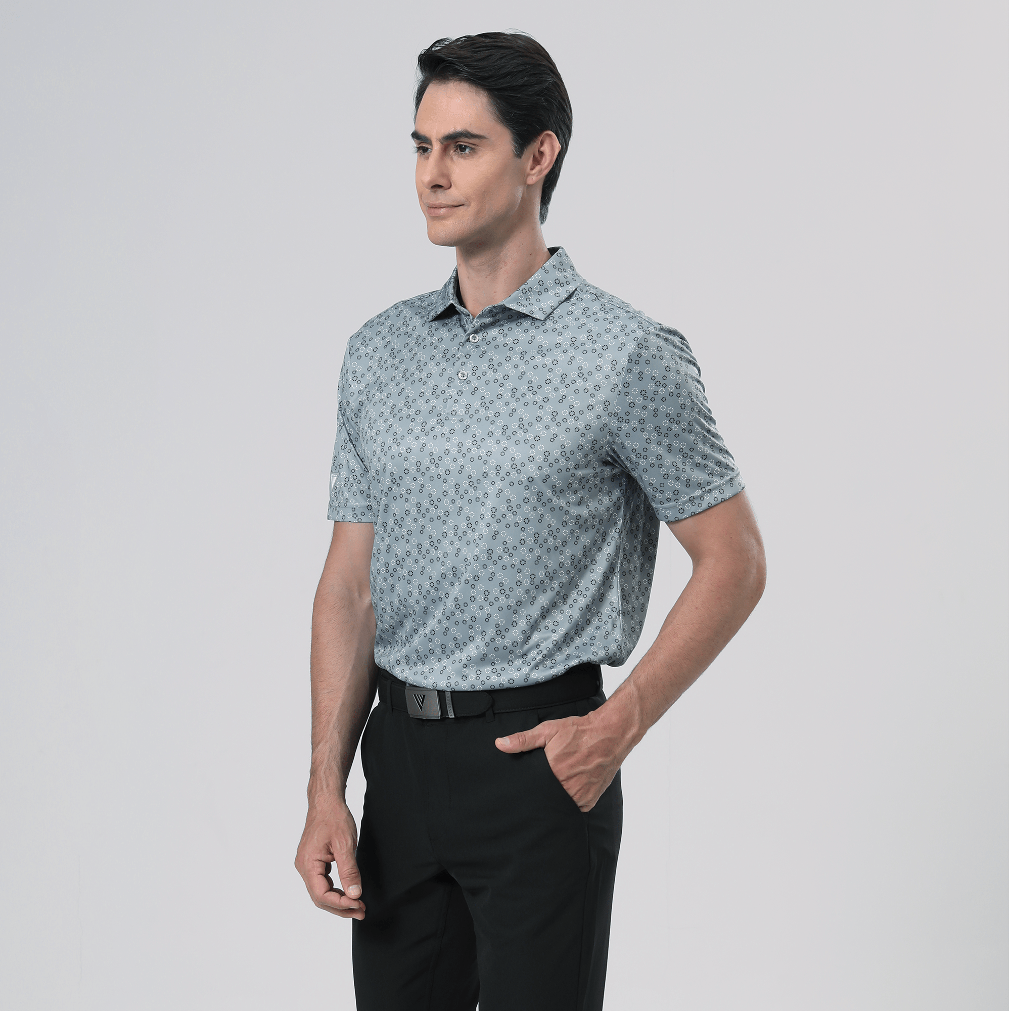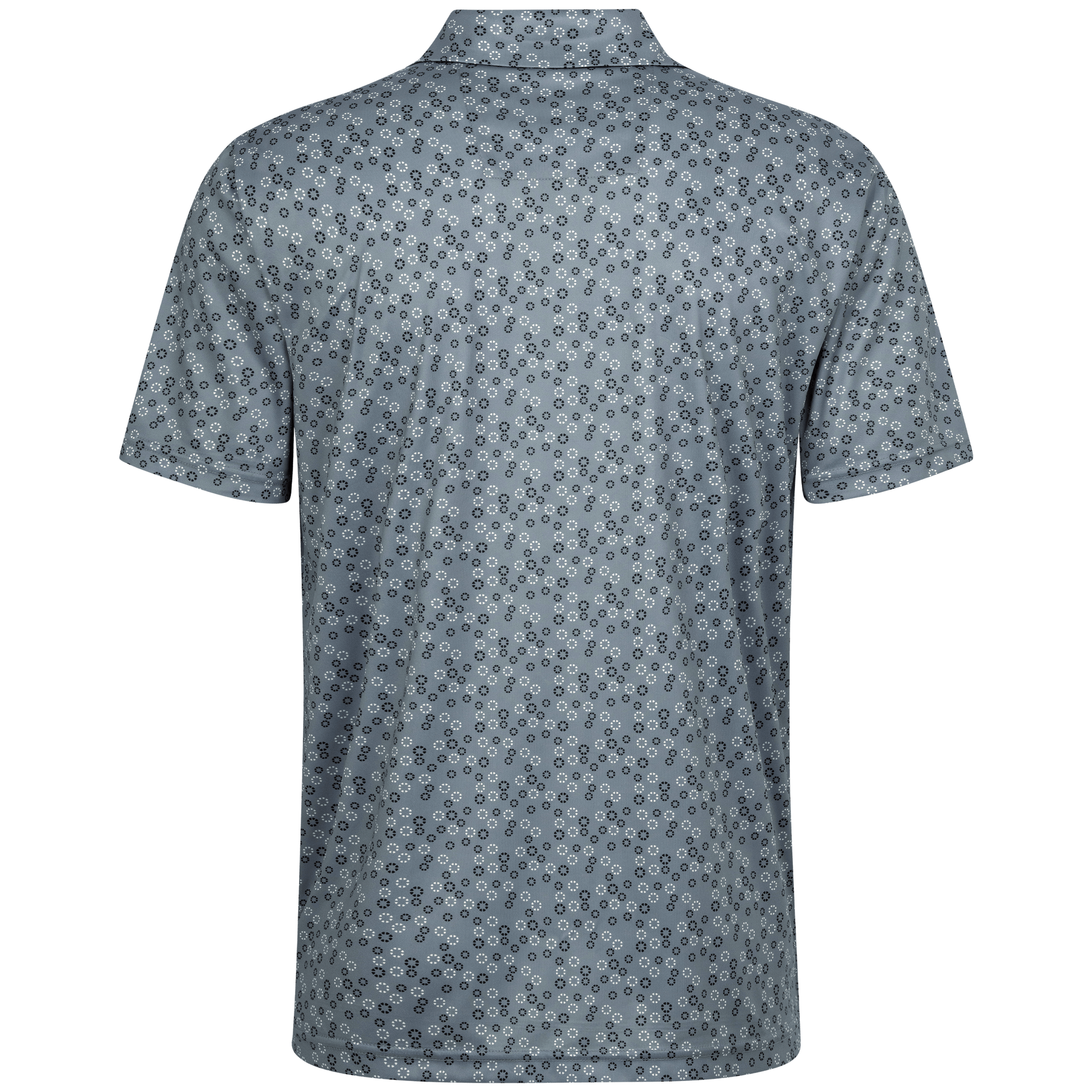 The men's Frost polo is expertly crafted for golfers who demand performance and style on the course. Made from 100% recycled polyester, this polo features advanced moisture-wicking technology that efficiently pulls sweat away from the skin, keeping you cool and dry during your game. The self-fabric collar, equipped with a built-in collar stay, ensures a polished look throughout your swing. Forward shoulder seams provide an enhanced range of motion, allowing for unrestricted movement, while the high-low hem detail with side slits adds a modern touch and extra flexibility. The all-over print lends a unique and stylish flair, making the Frost polo not just functional but also a standout piece in your golf wardrobe. Whether you're teeing off or enjoying a casual day out, this polo combines eco-friendly materials with thoughtful design to keep you looking sharp and feeling great.