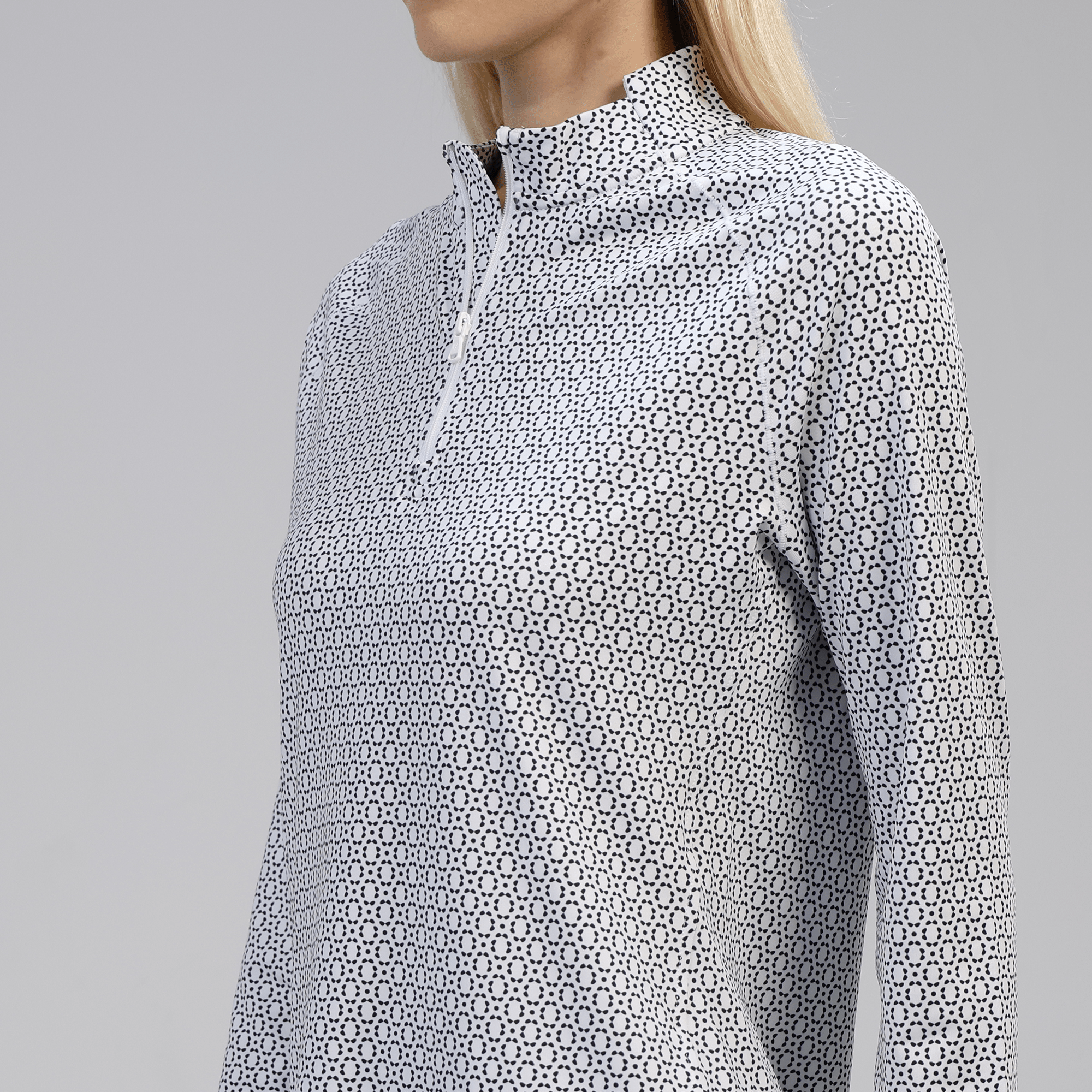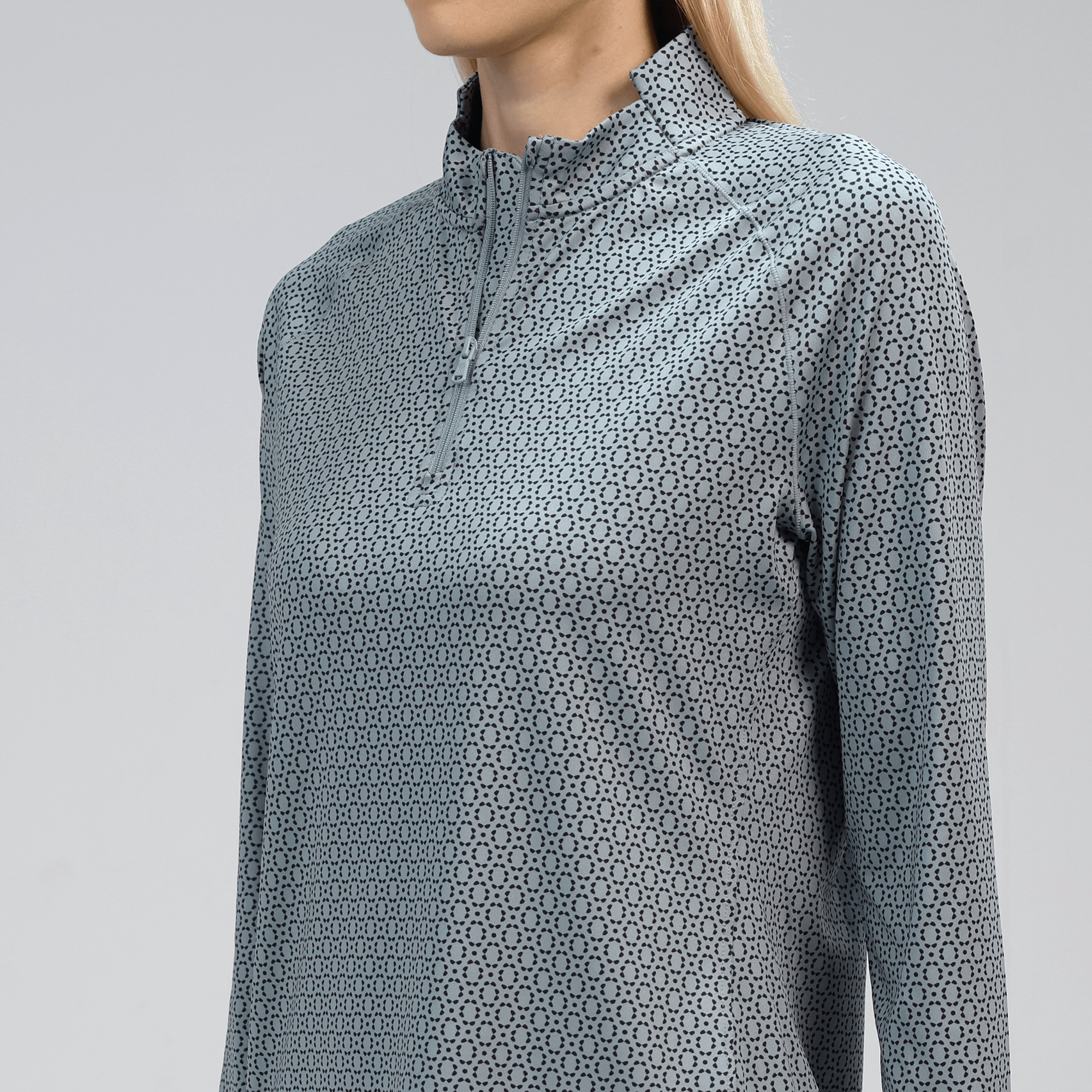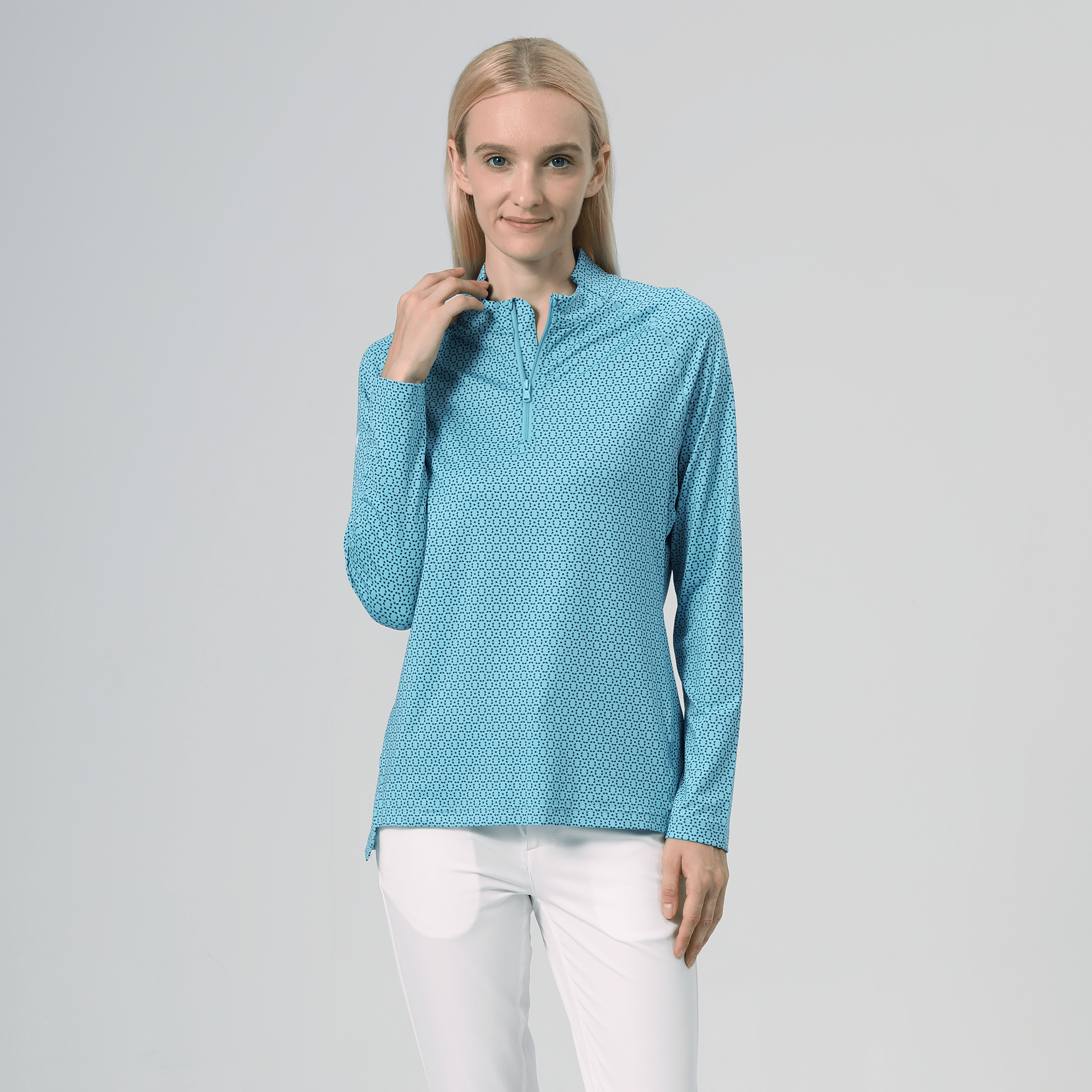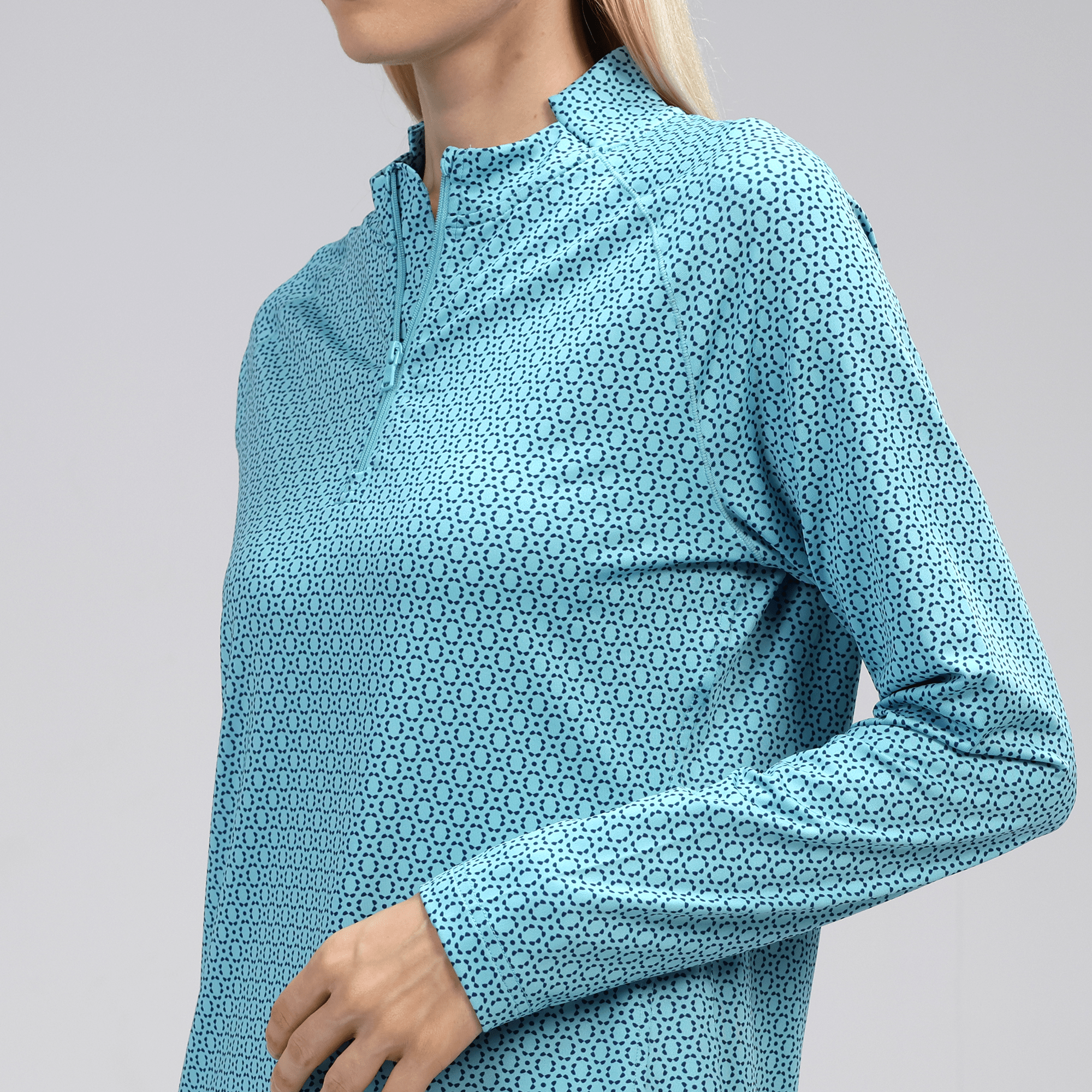 The Mirror polo is designed to keep you cool and comfortable while making a statement. Made from 88% polyester and 12% spandex, this polo features moisture-wicking and anti-static properties to ensure you stay dry and free from fabric cling. With UPF 50+ protection, it guards against harmful UV rays, making it ideal for outdoor activities. The quarter-zip with a stand-up collar provides adjustable coverage, while the high-low hem detail with a reduced front hem enhances movement and adds a sleek, modern silhouette. The all-over print adds a bold, dynamic touch, making the Mirror polo a perfect choice.