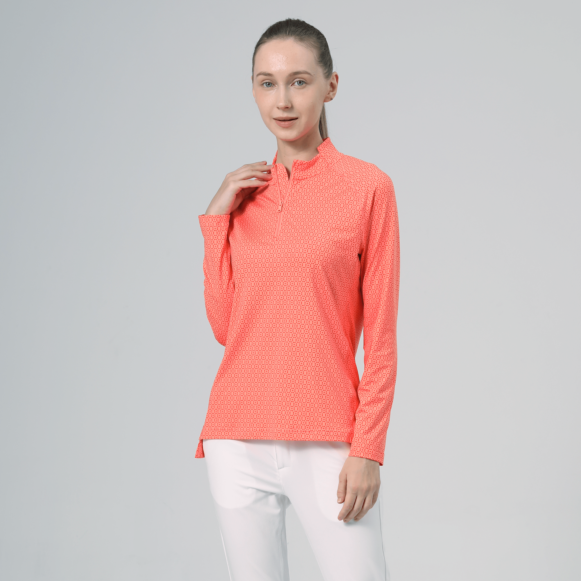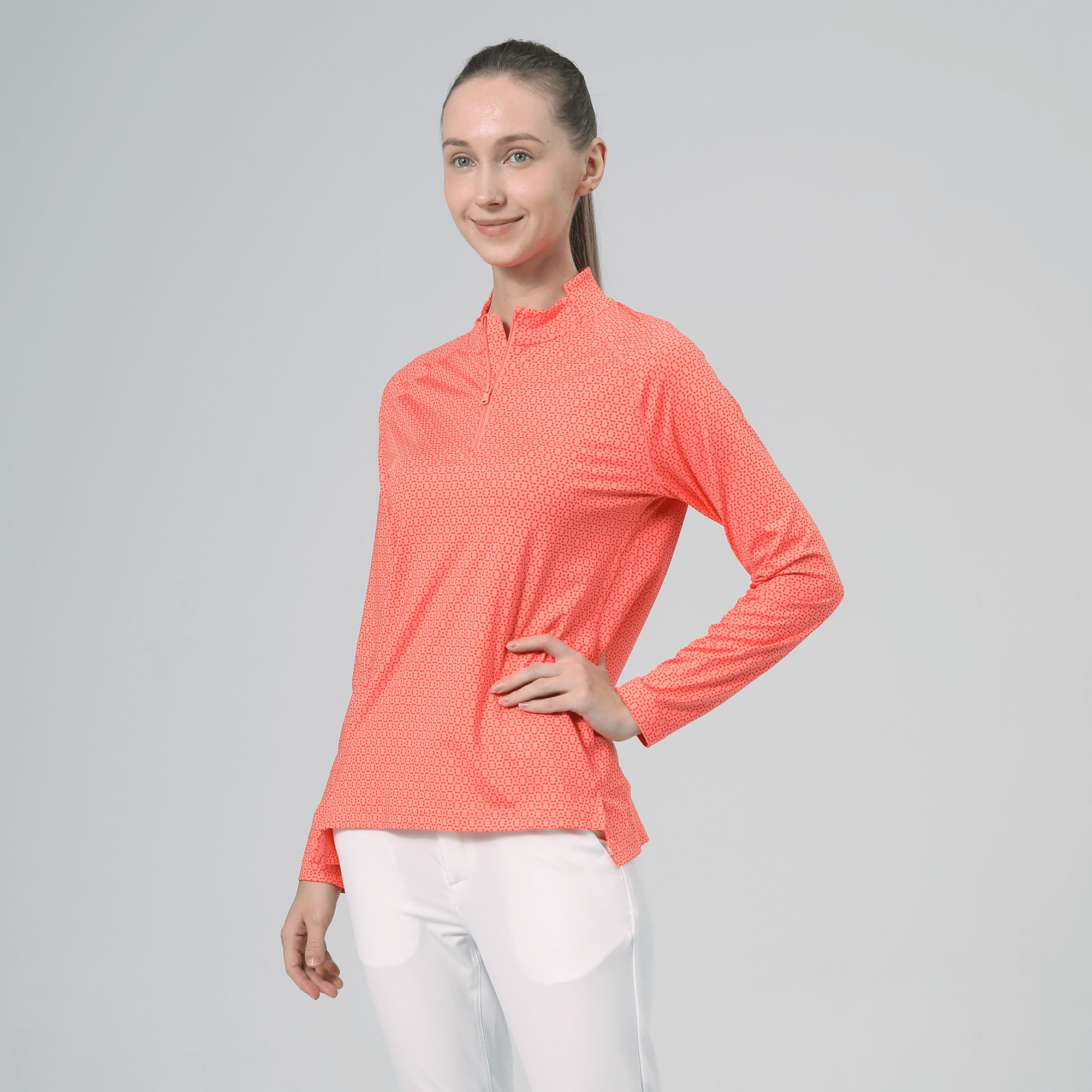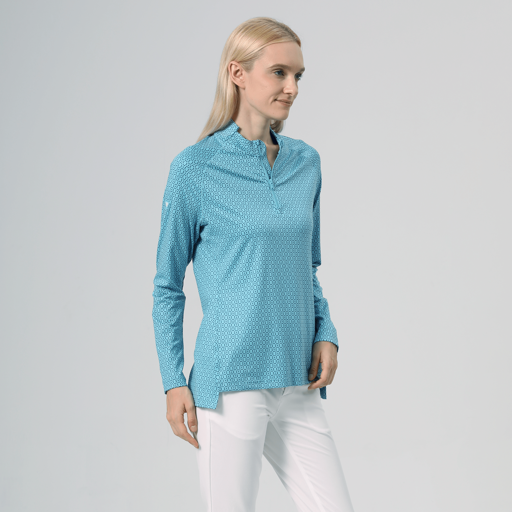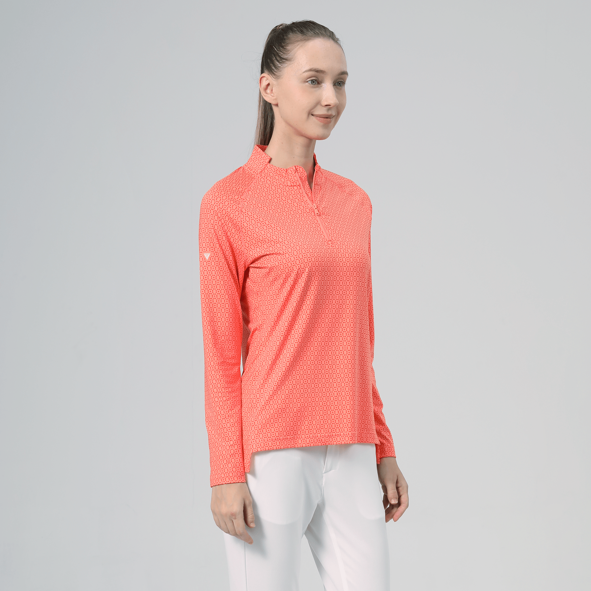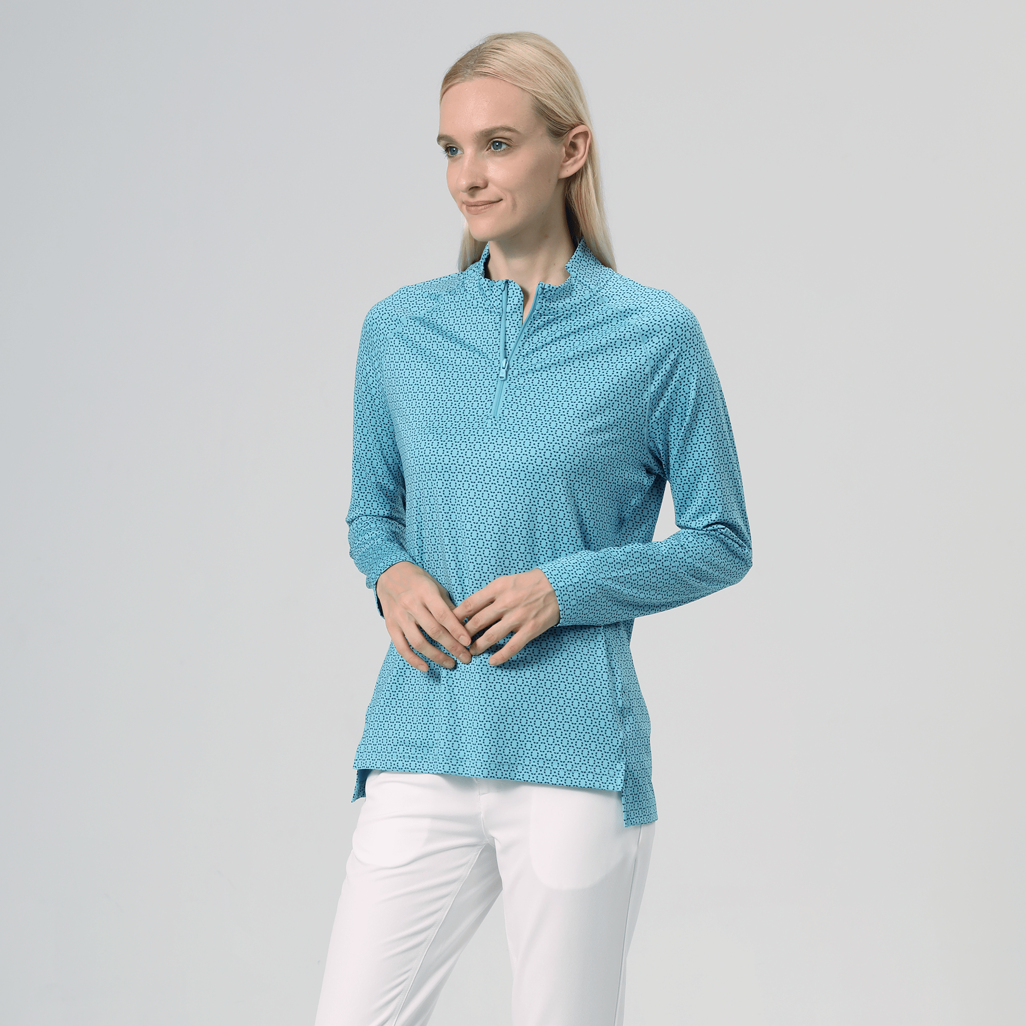 The Mirror polo is designed to keep you cool and comfortable while making a statement. Made from 88% polyester and 12% spandex, this polo features moisture-wicking and anti-static properties to ensure you stay dry and free from fabric cling. With UPF 50+ protection, it guards against harmful UV rays, making it ideal for outdoor activities. The quarter-zip with a stand-up collar provides adjustable coverage, while the high-low hem detail with a reduced front hem enhances movement and adds a sleek, modern silhouette. The all-over print adds a bold, dynamic touch, making the Mirror polo a perfect choice.