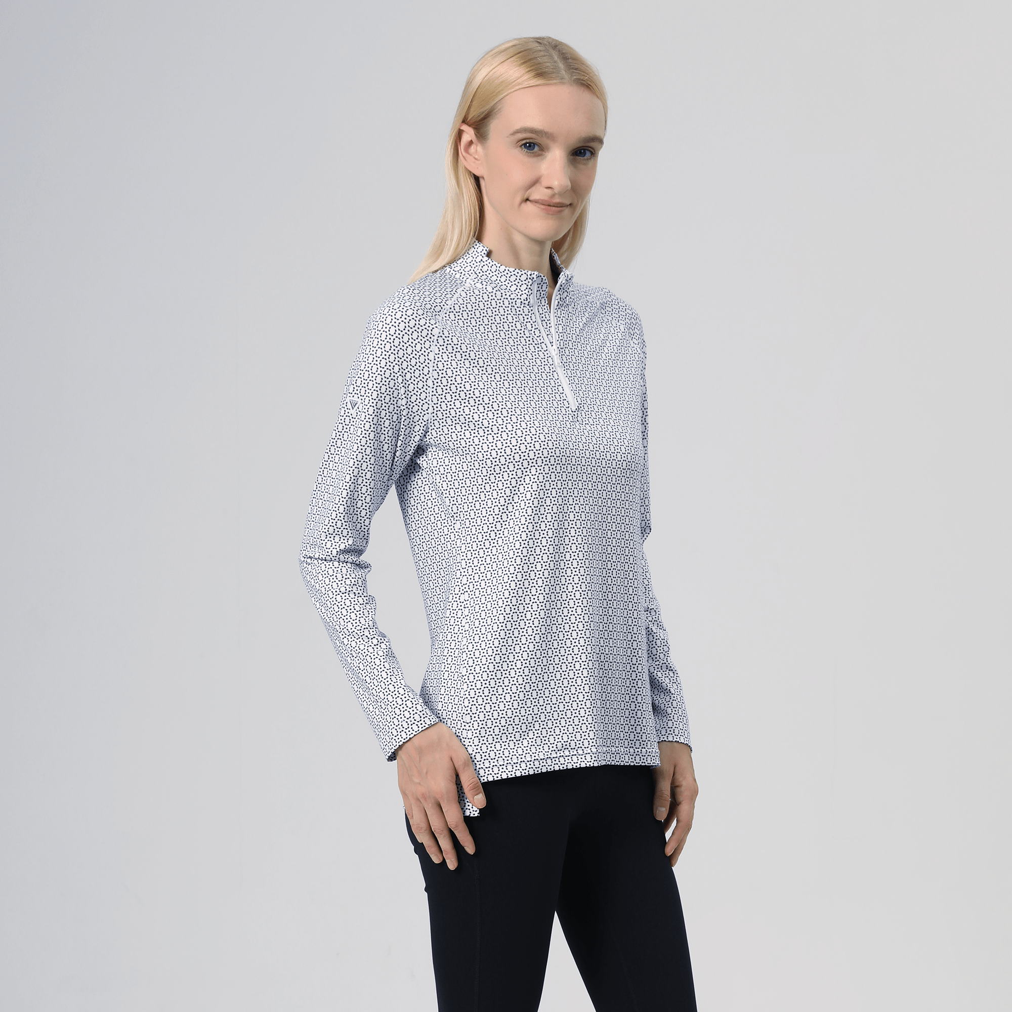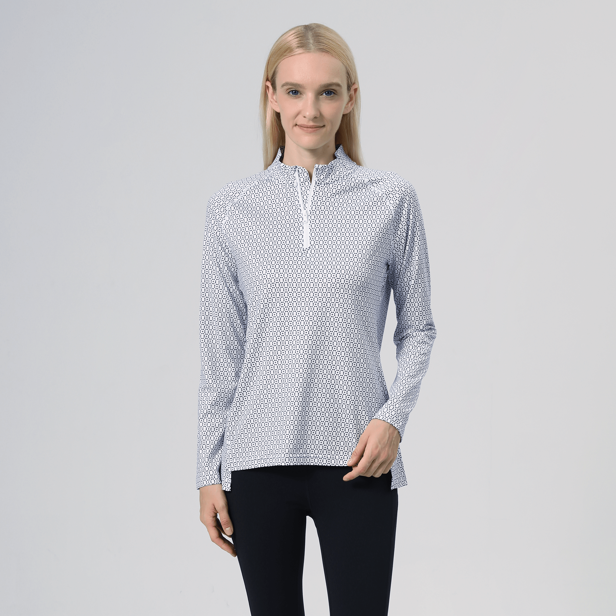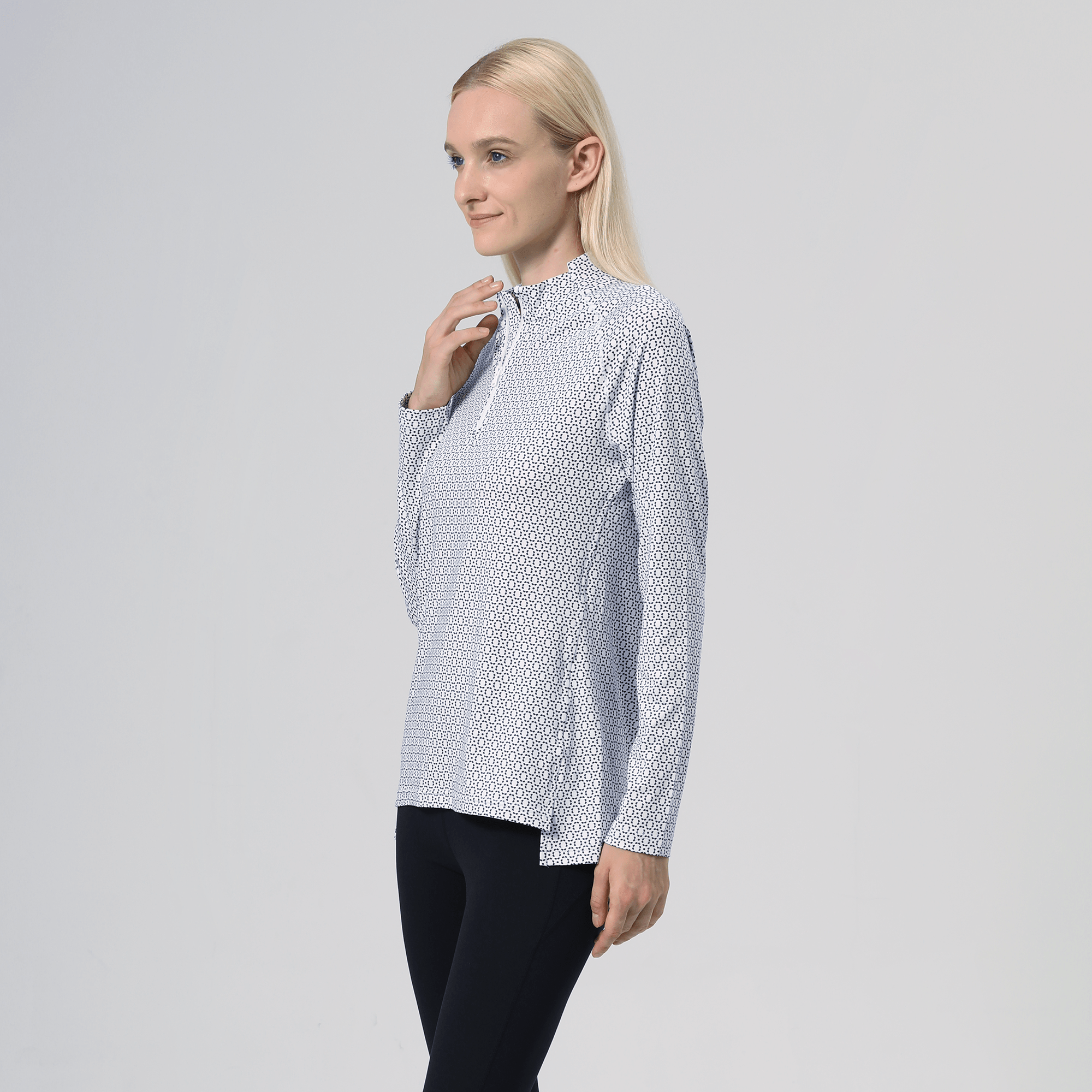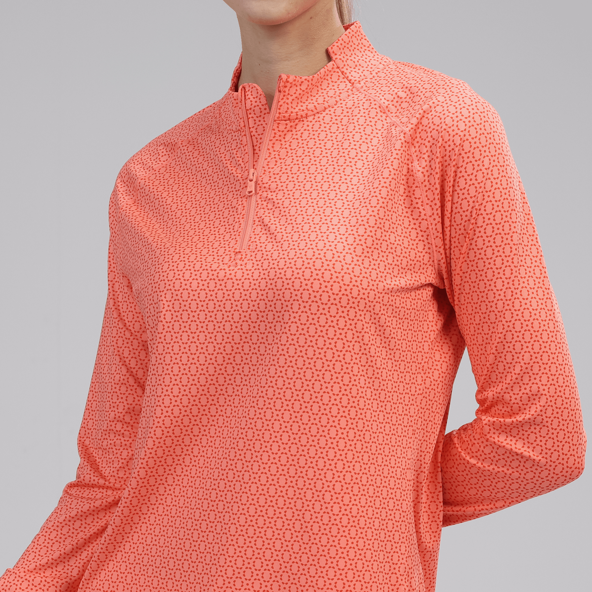 The Mirror polo is designed to keep you cool and comfortable while making a statement. Made from 88% polyester and 12% spandex, this polo features moisture-wicking and anti-static properties to ensure you stay dry and free from fabric cling. With UPF 50+ protection, it guards against harmful UV rays, making it ideal for outdoor activities. The quarter-zip with a stand-up collar provides adjustable coverage, while the high-low hem detail with a reduced front hem enhances movement and adds a sleek, modern silhouette. The all-over print adds a bold, dynamic touch, making the Mirror polo a perfect choice.