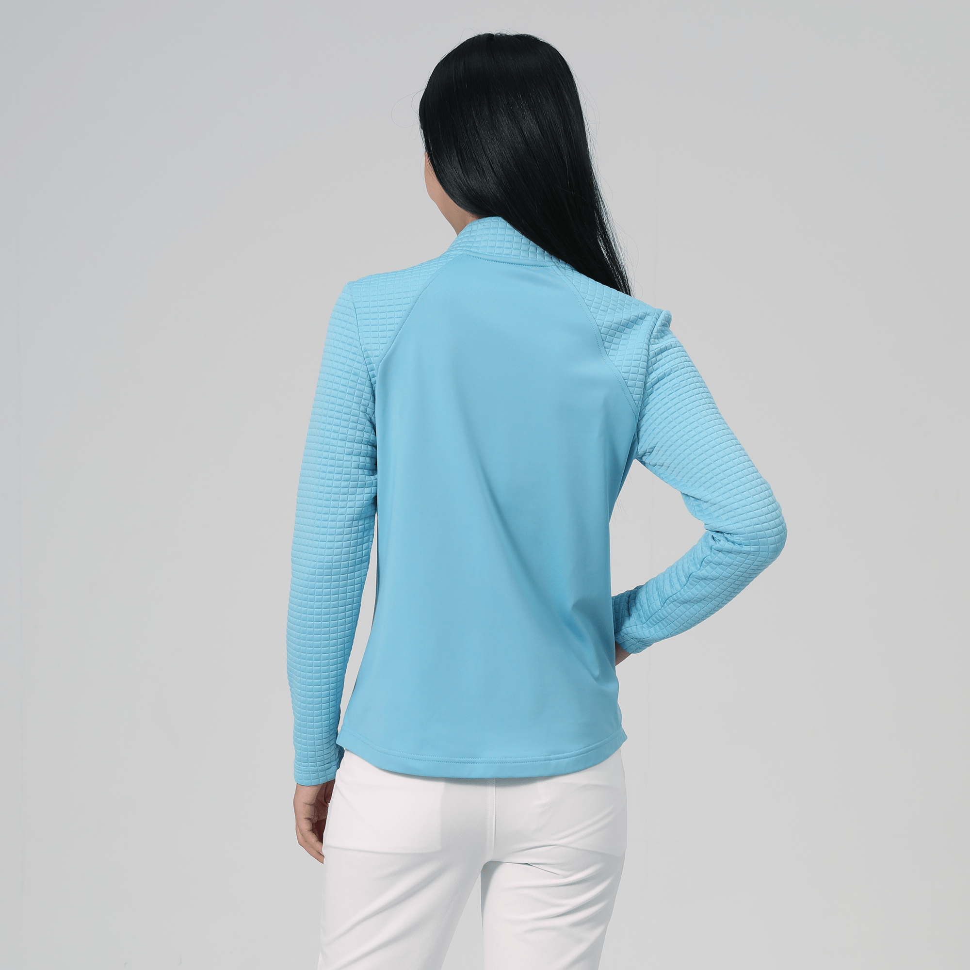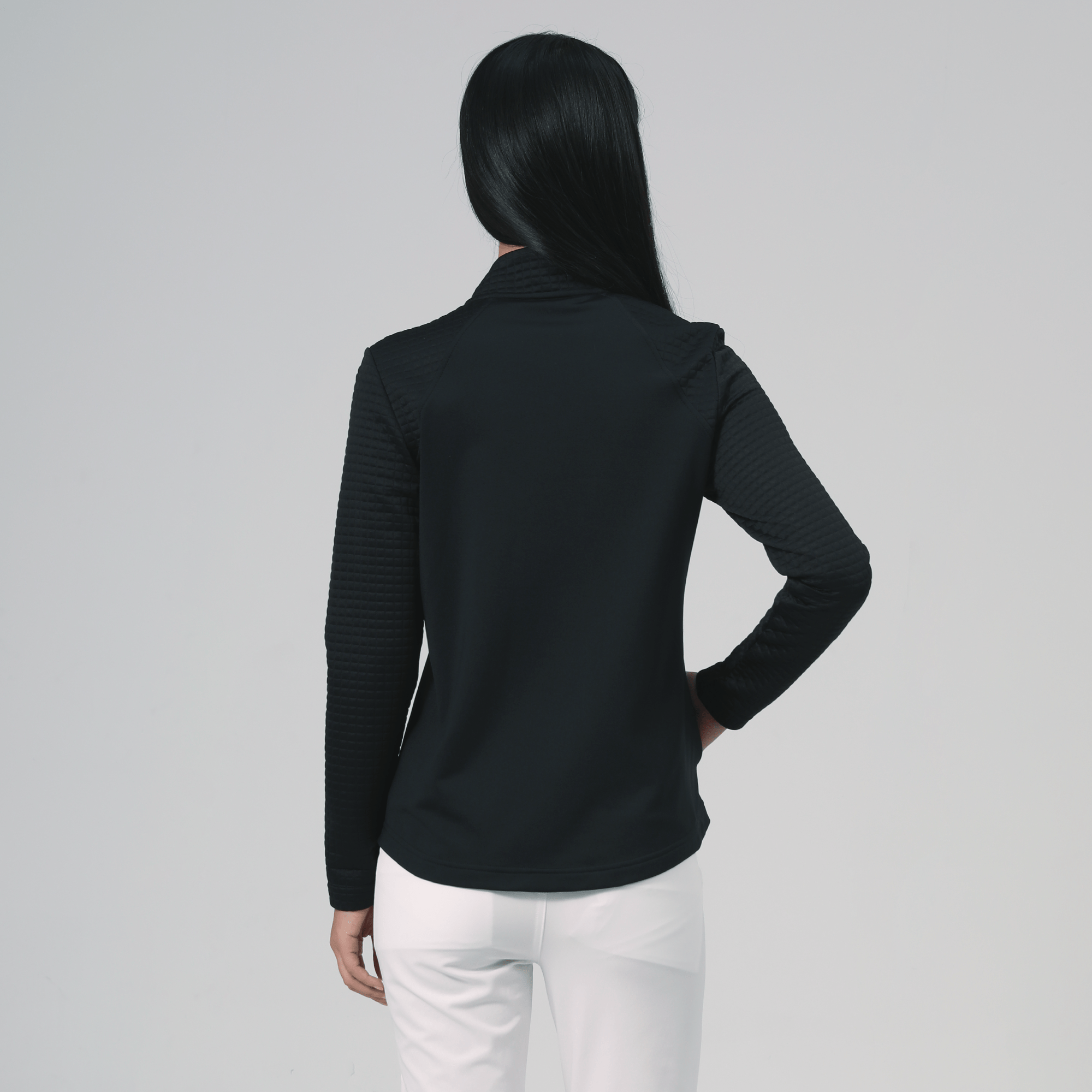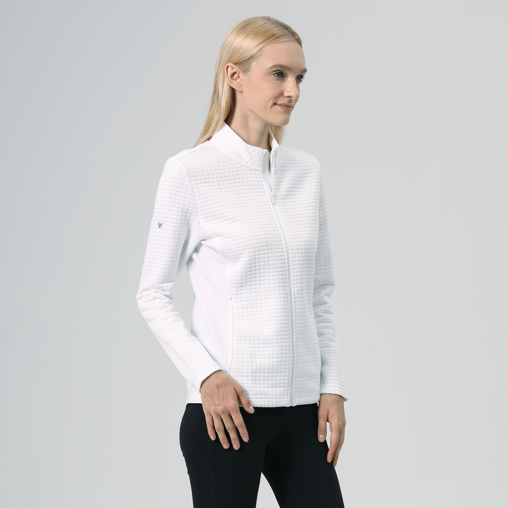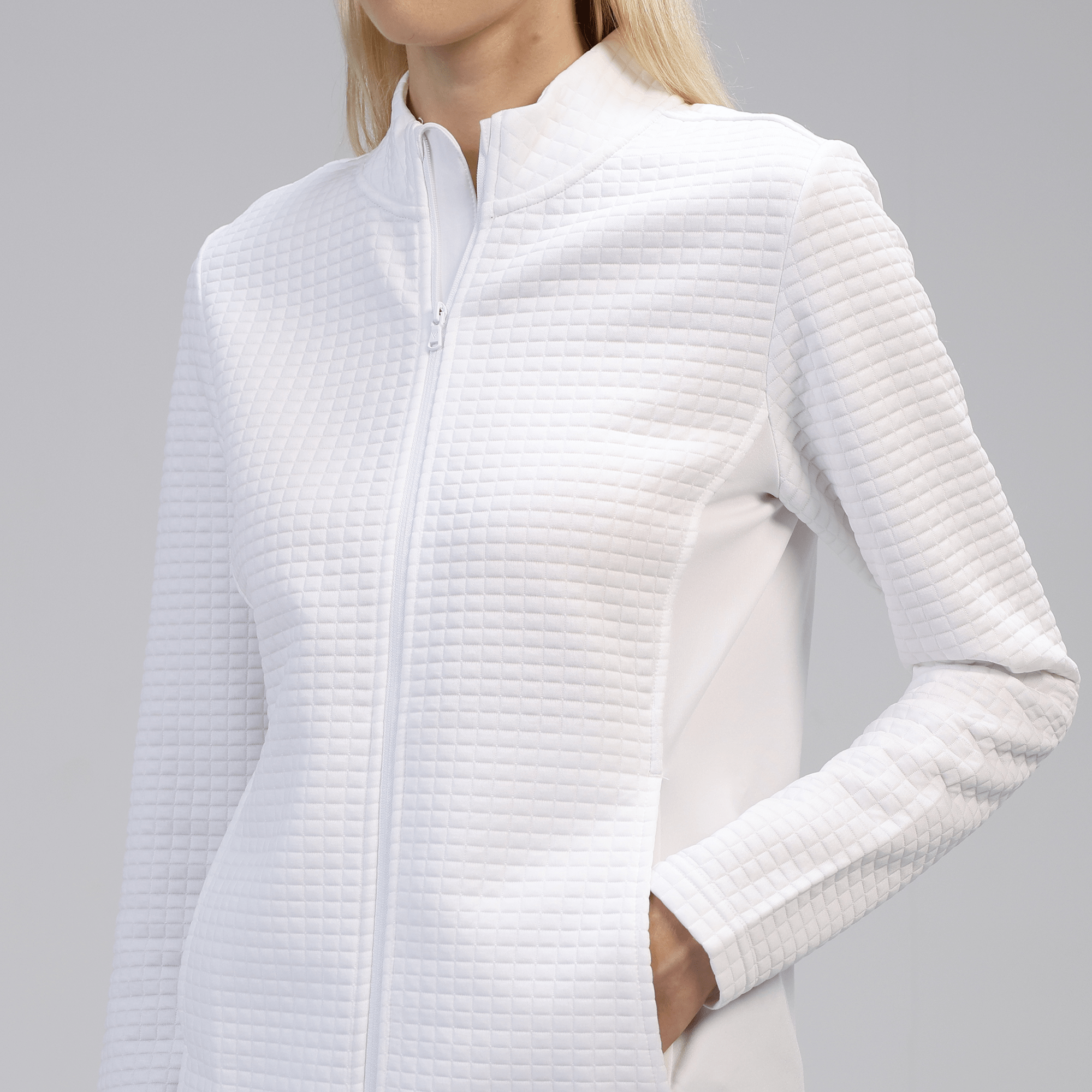 The women's Tailgate layering piece is made from a blend of 96% polyester and 4% spandex, it features textured self-fabric for a refined look and feel. The full front zip with a stand-up collar offers adjustable coverage, while forward shoulder seams enhance mobility. Contrast solid side panels add a modern touch, complementing the high-low hem detail for added comfort and coverage. Crafted from recycled materials, this jacket is both sustainable and practical, making it perfect for active or casual wear.