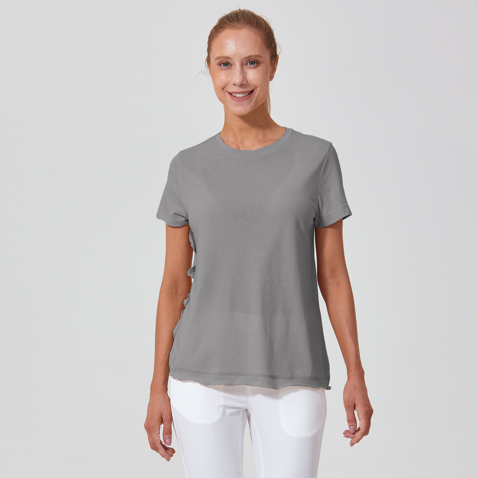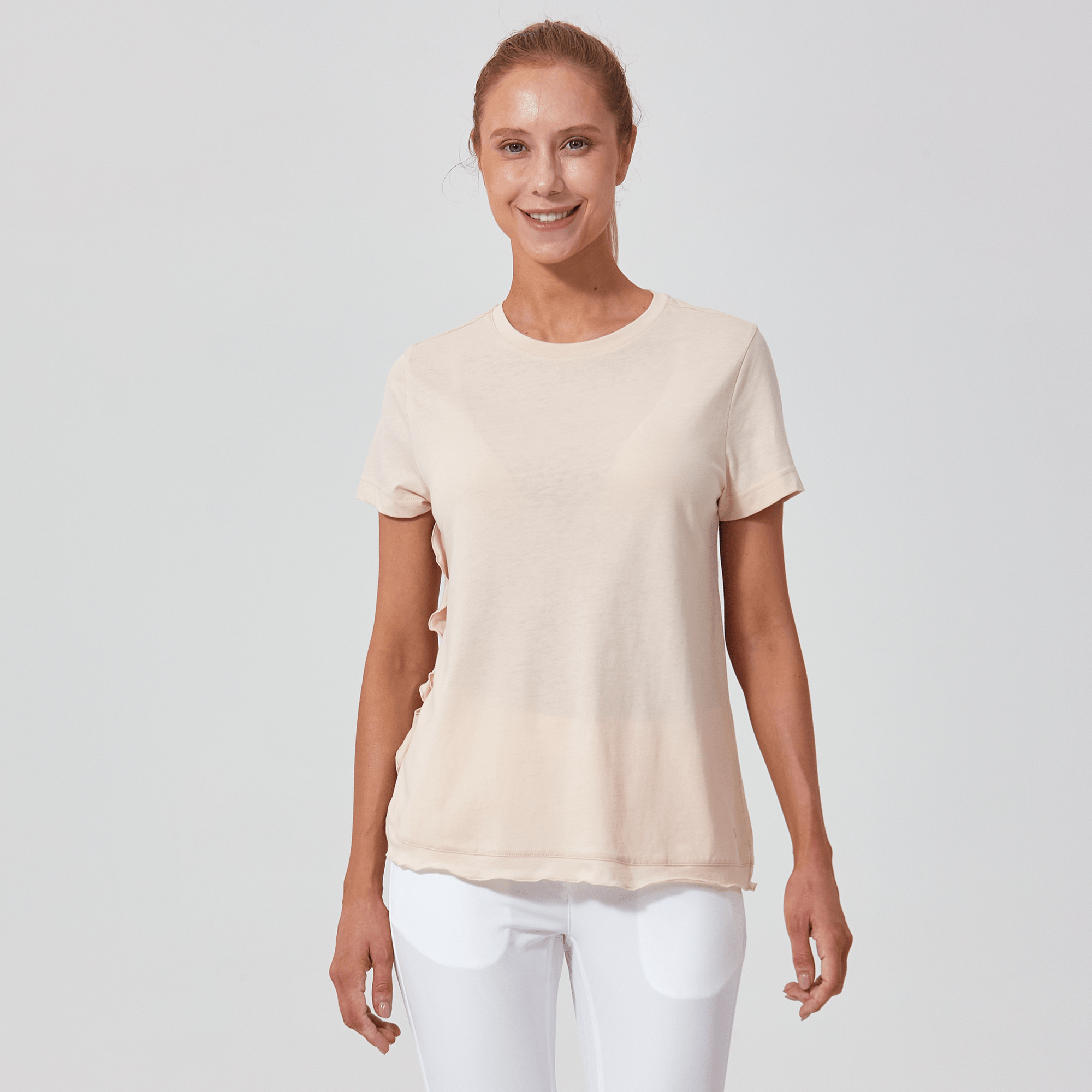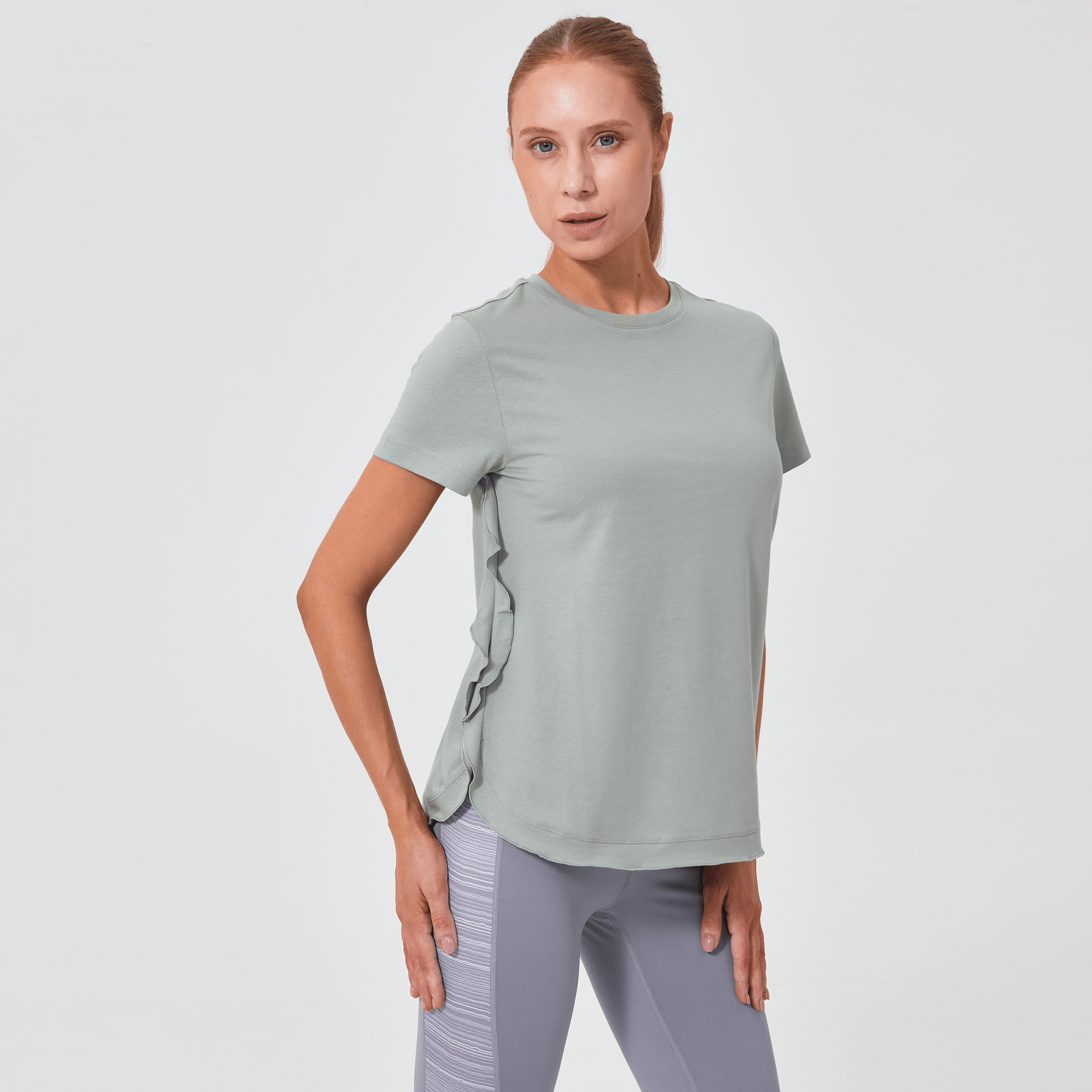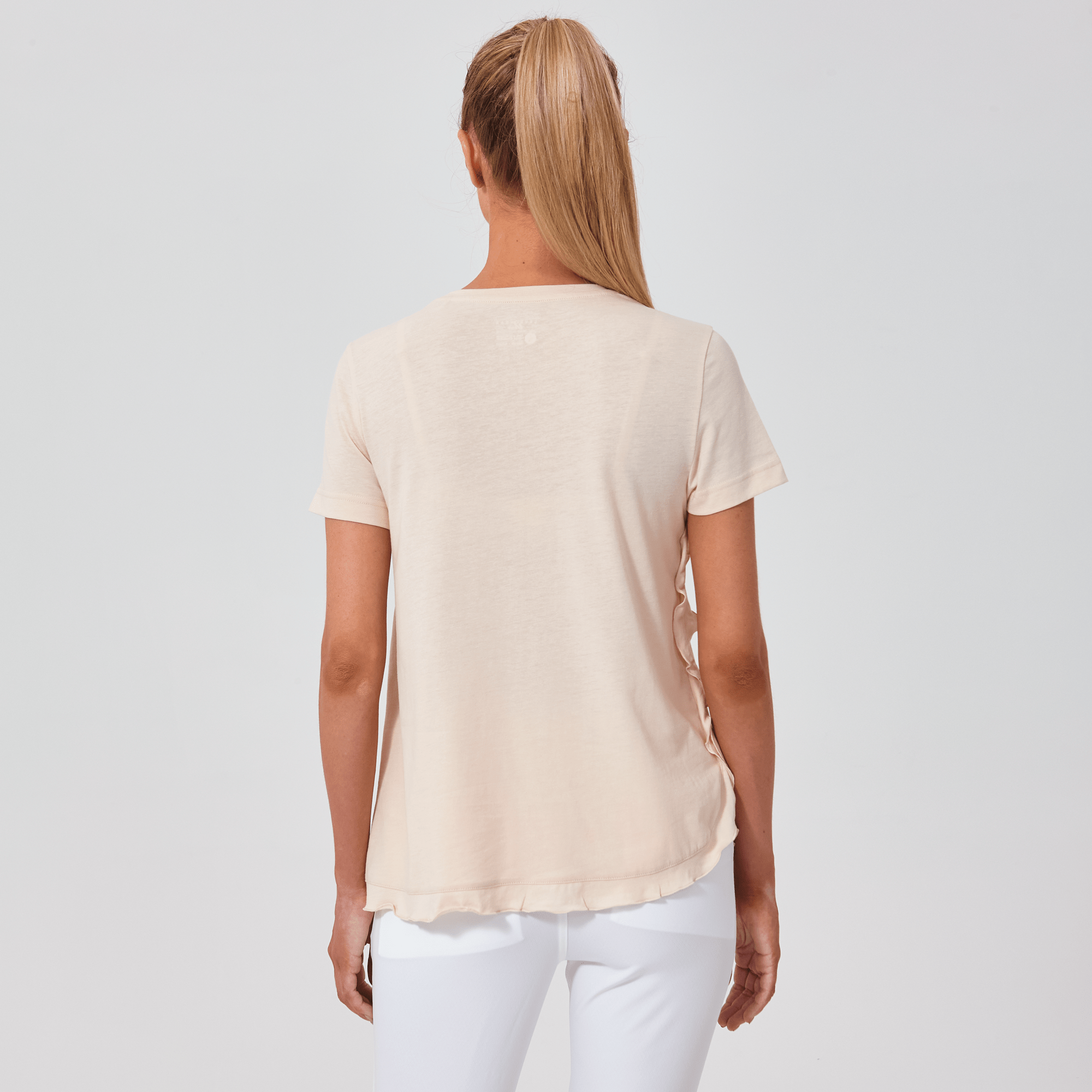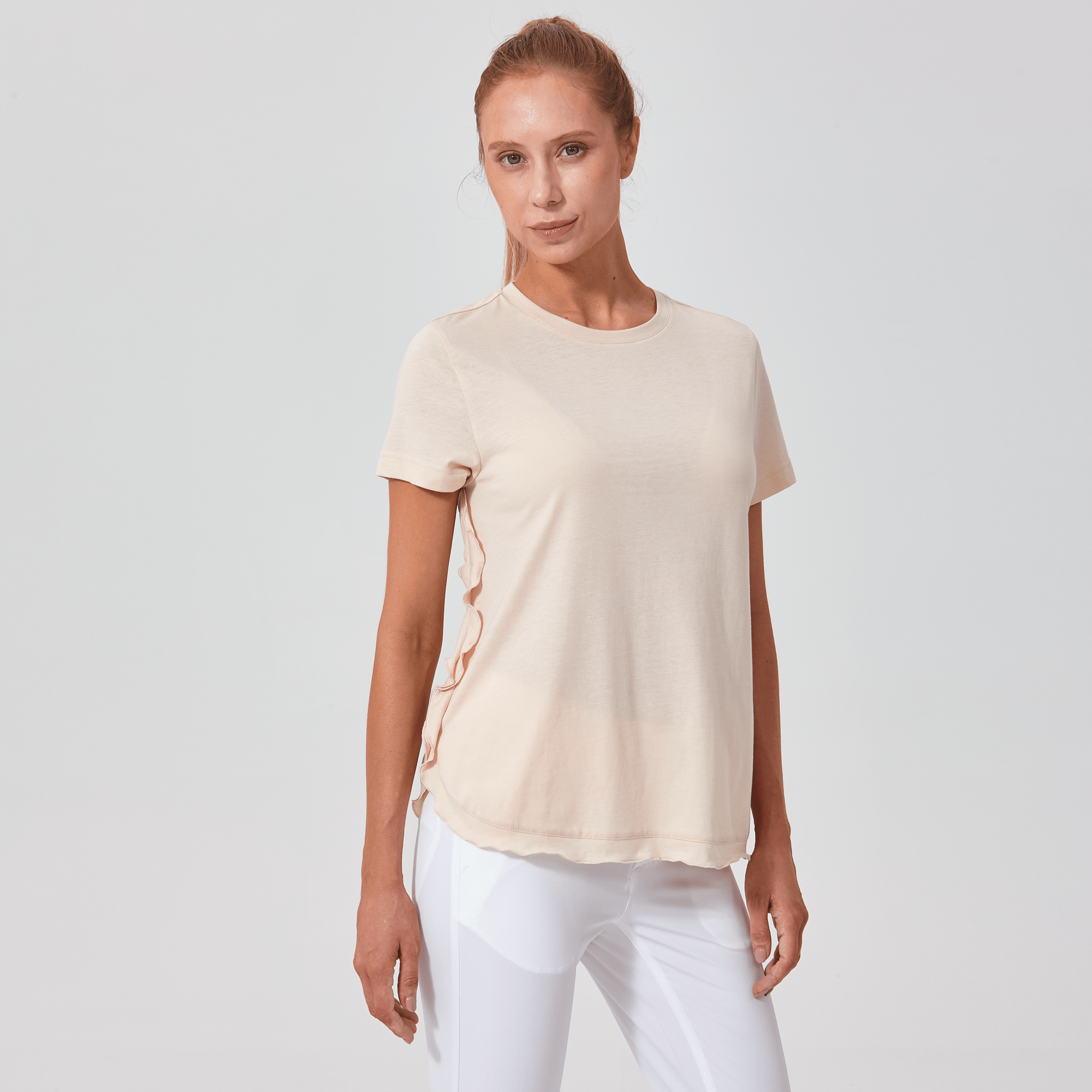 The Verve Airflow t-shirt is a delightful addition to any casual wardrobe. Designed with a flowing A-line silhouette, this top is crafted from a soft mix of 60% cotton and 40% polyester, ensuring breathability and ease of wear. A charming flounced detail runs along the side seam to the body hem, adding a playful and graceful touch to the garment. Whether you're running errands or enjoying a weekend brunch, the Airflow t-shirt is perfect for those who love a relaxed yet stylish look.