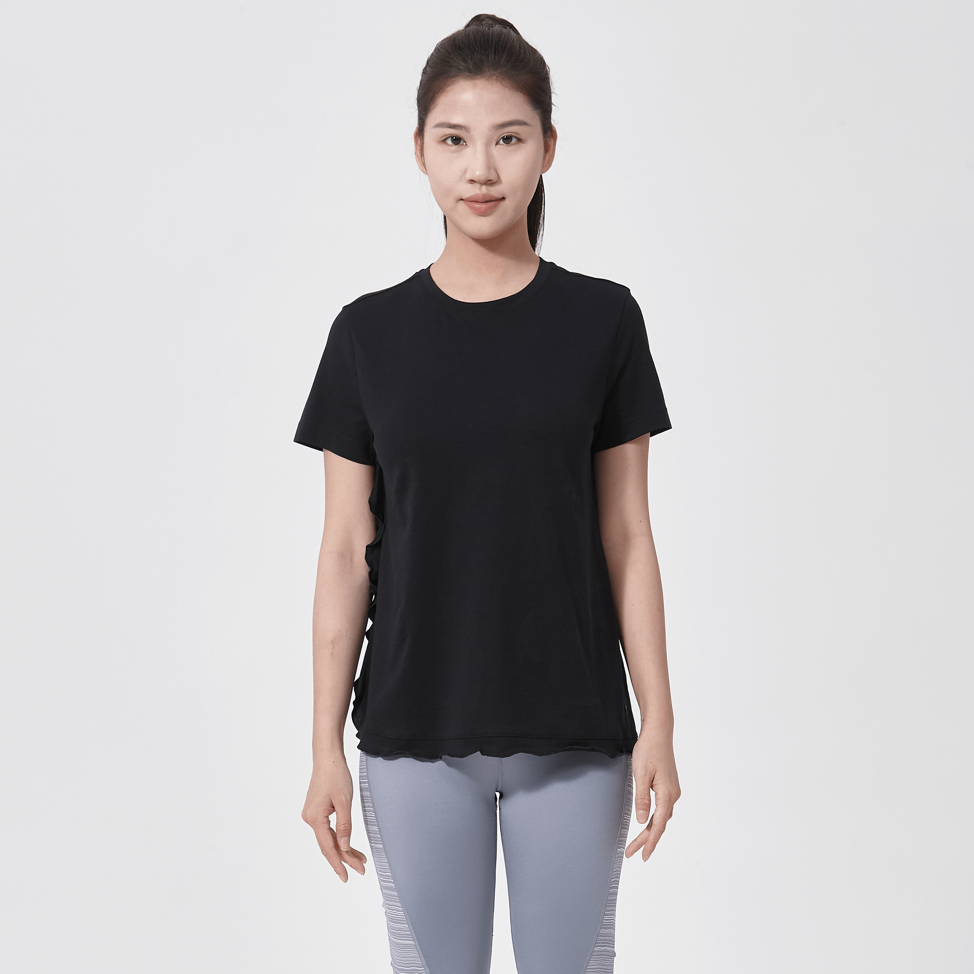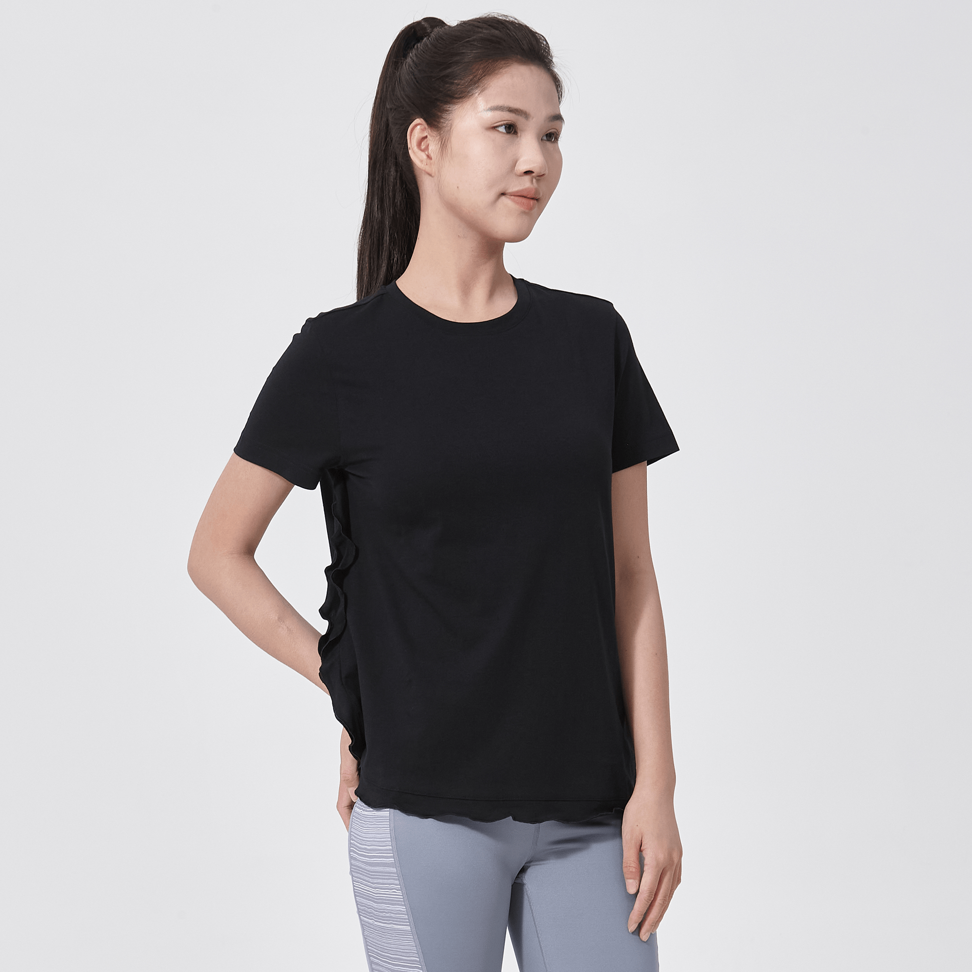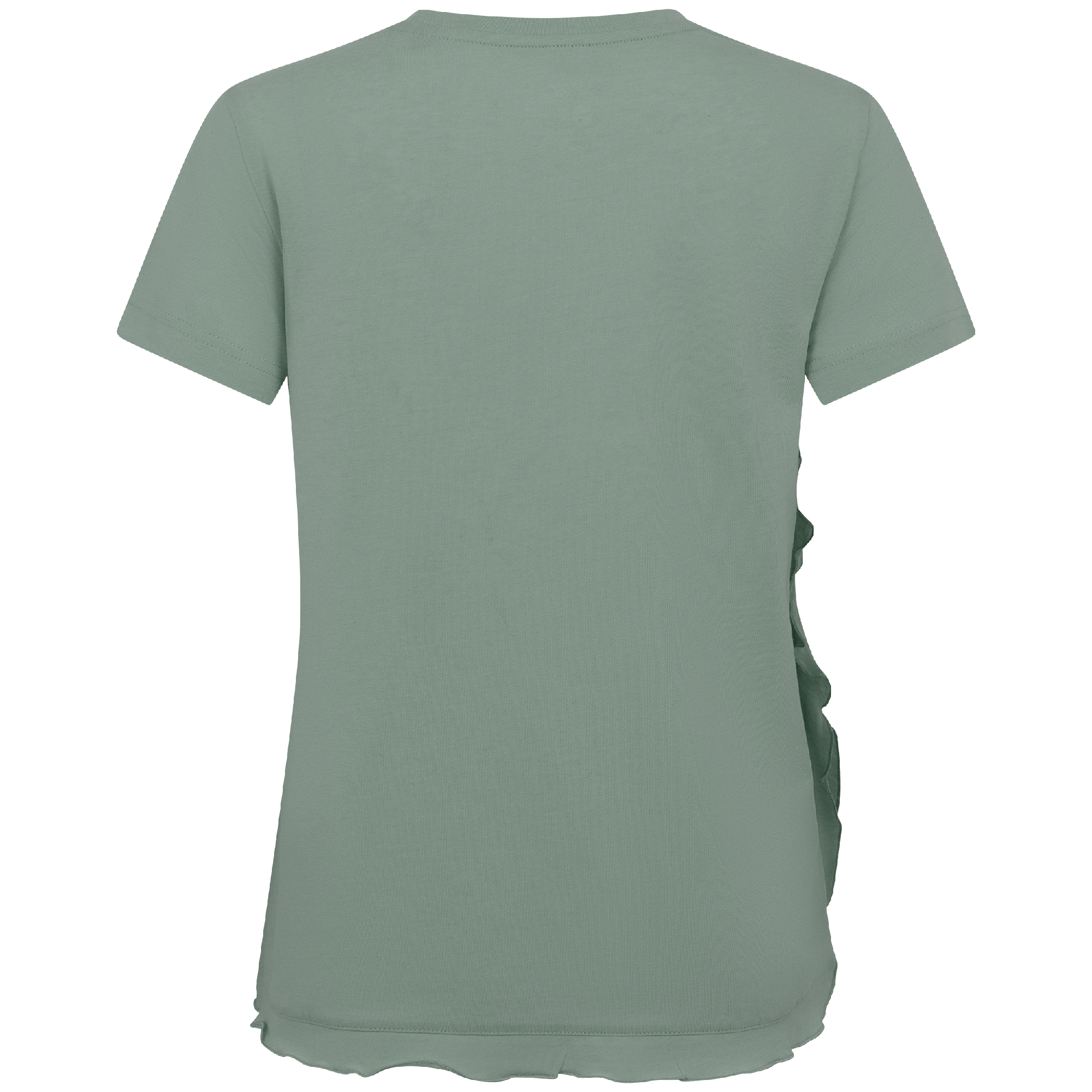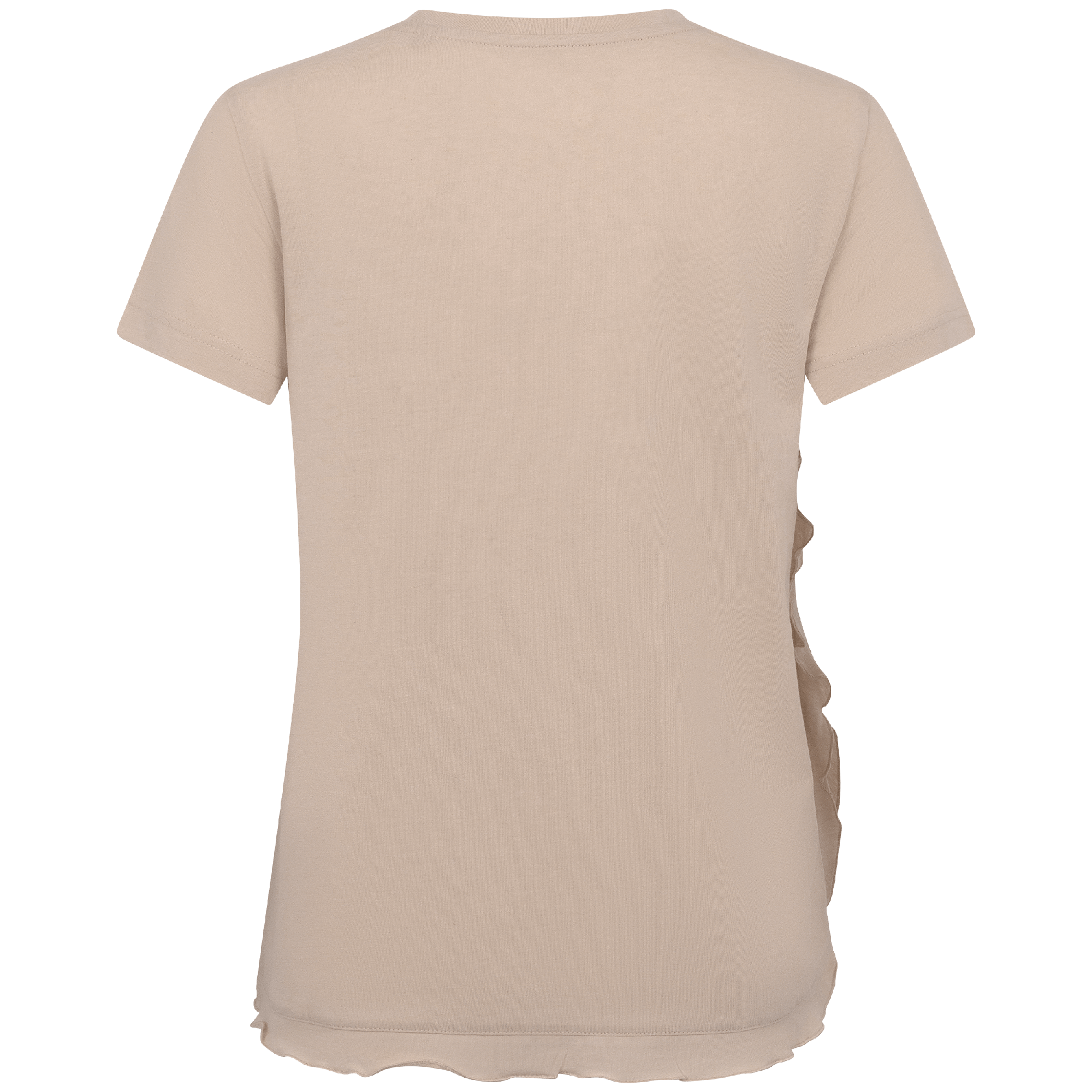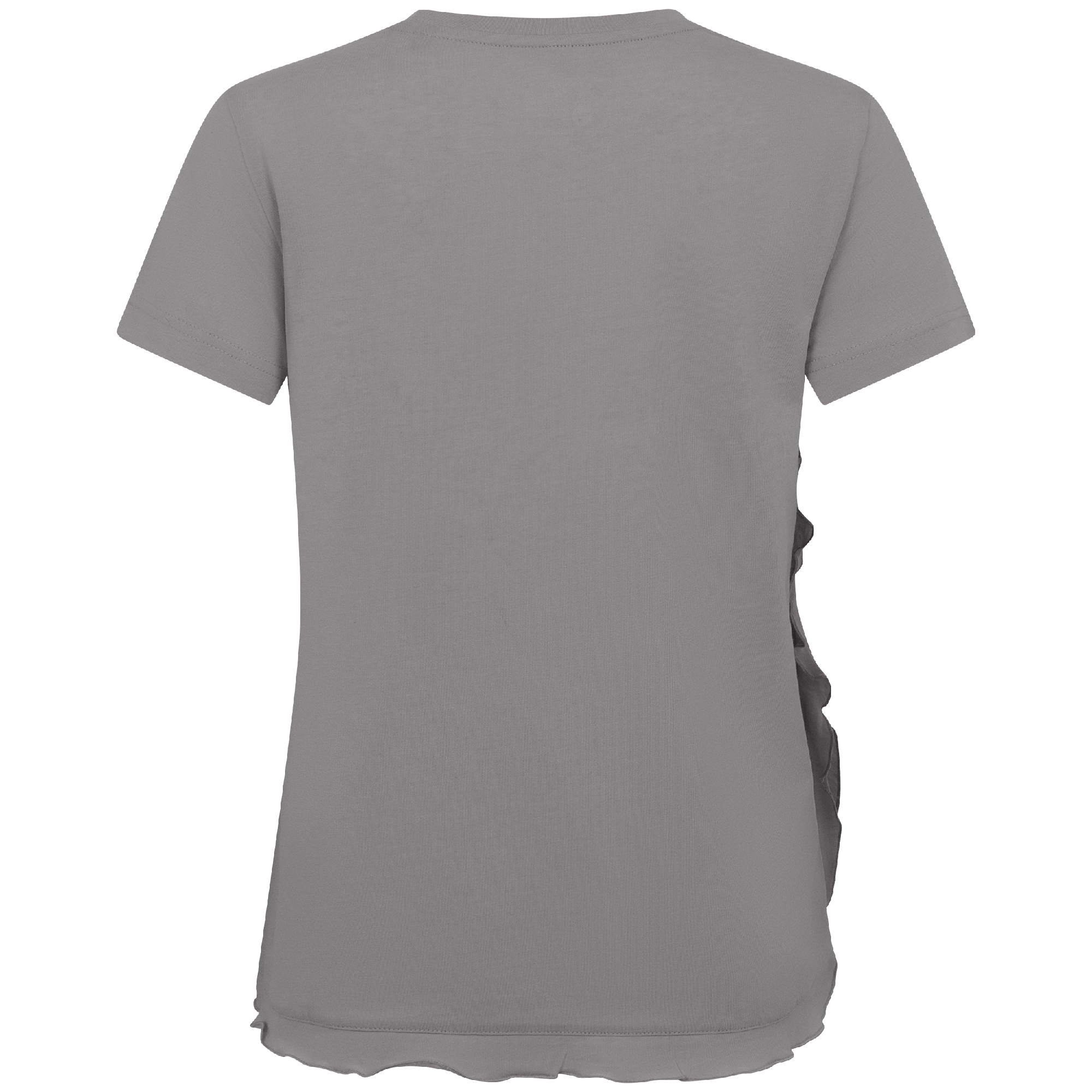 - Flounced detail along side seam to body hem