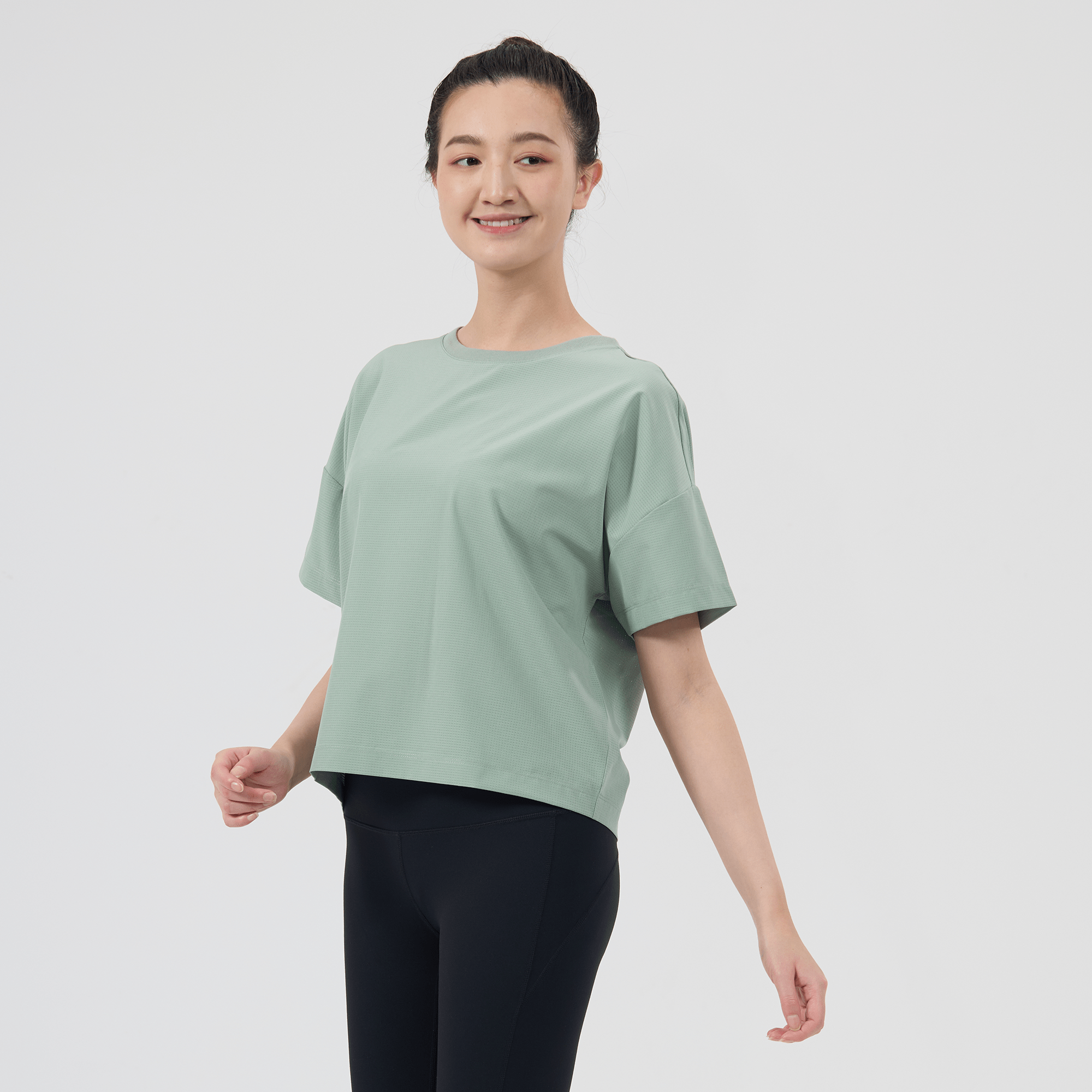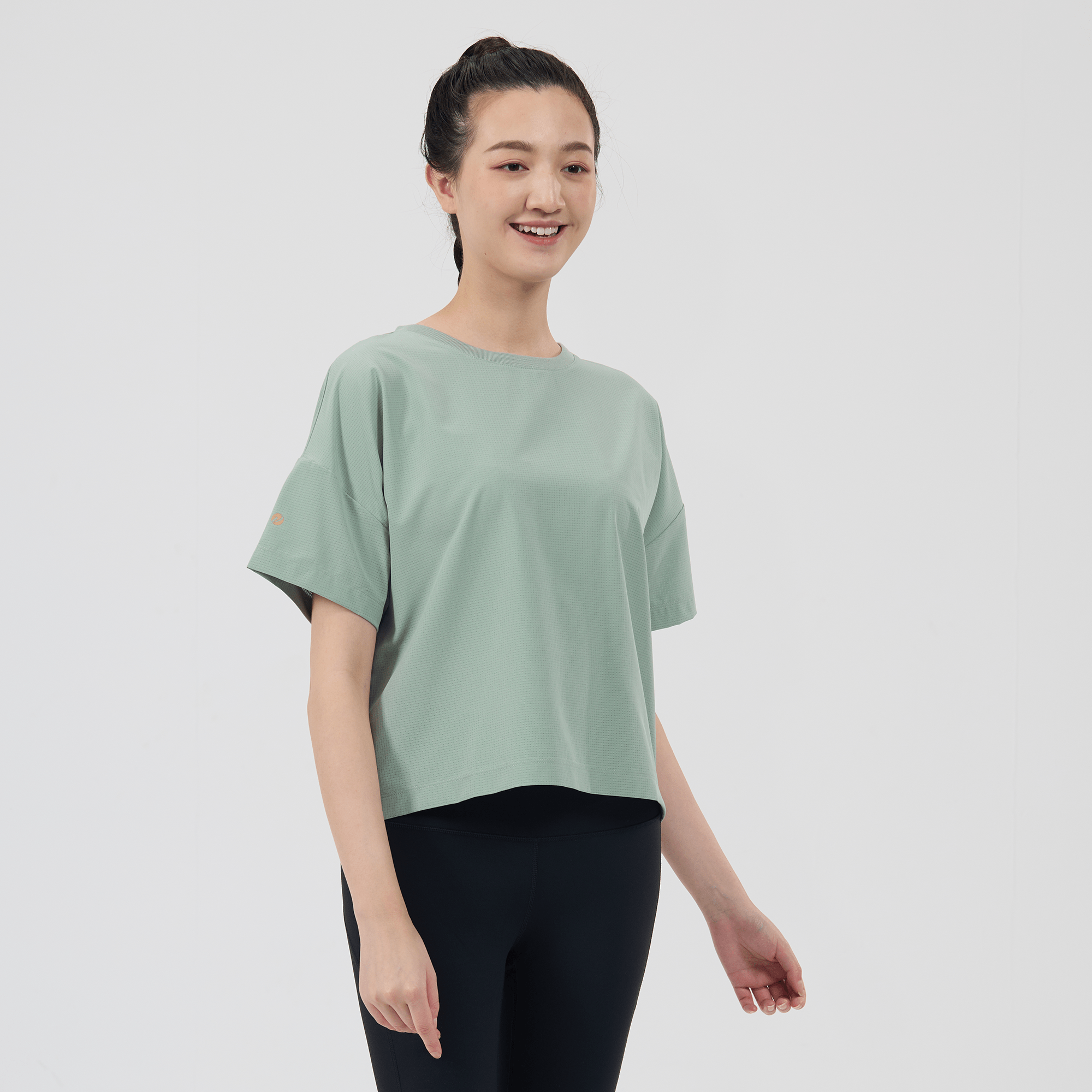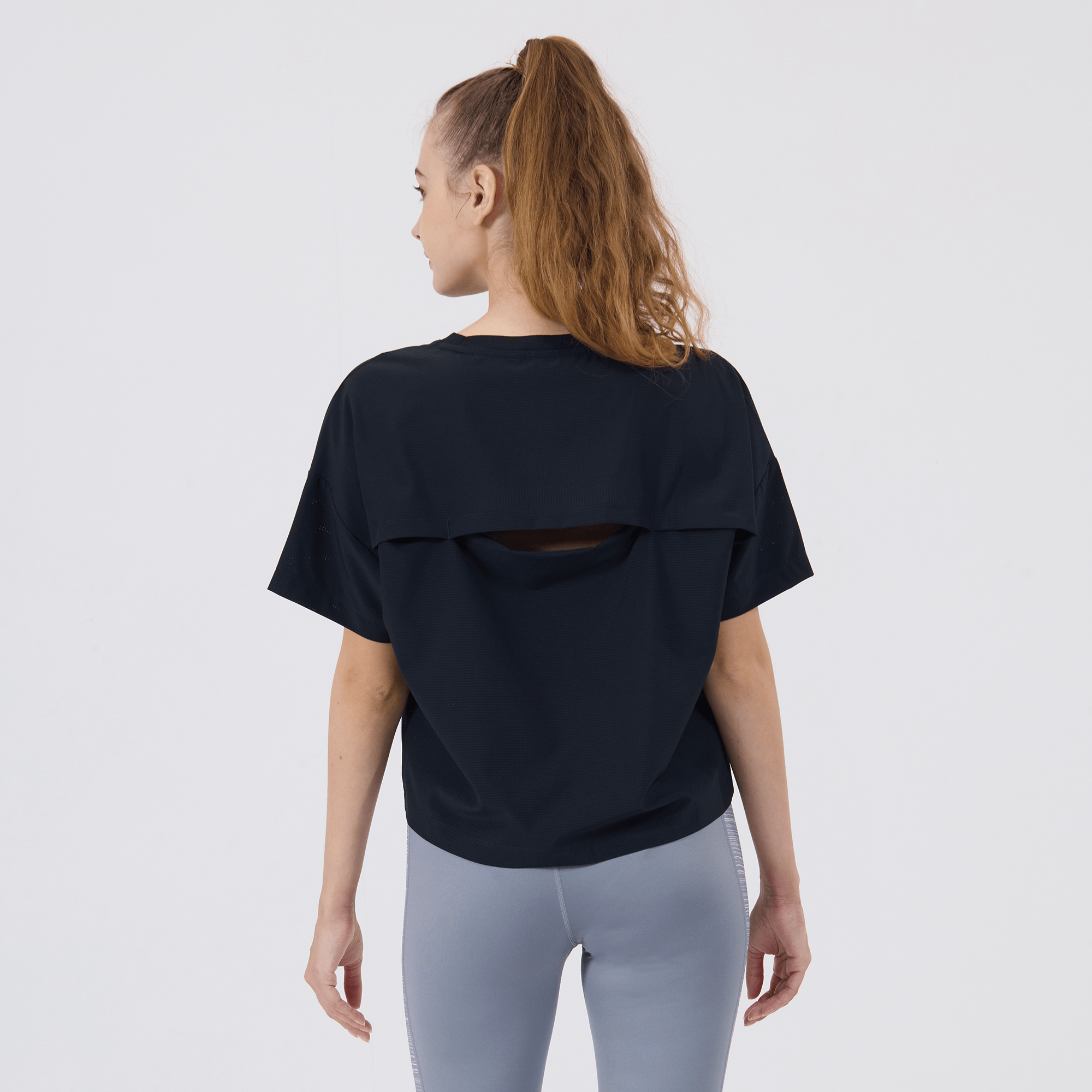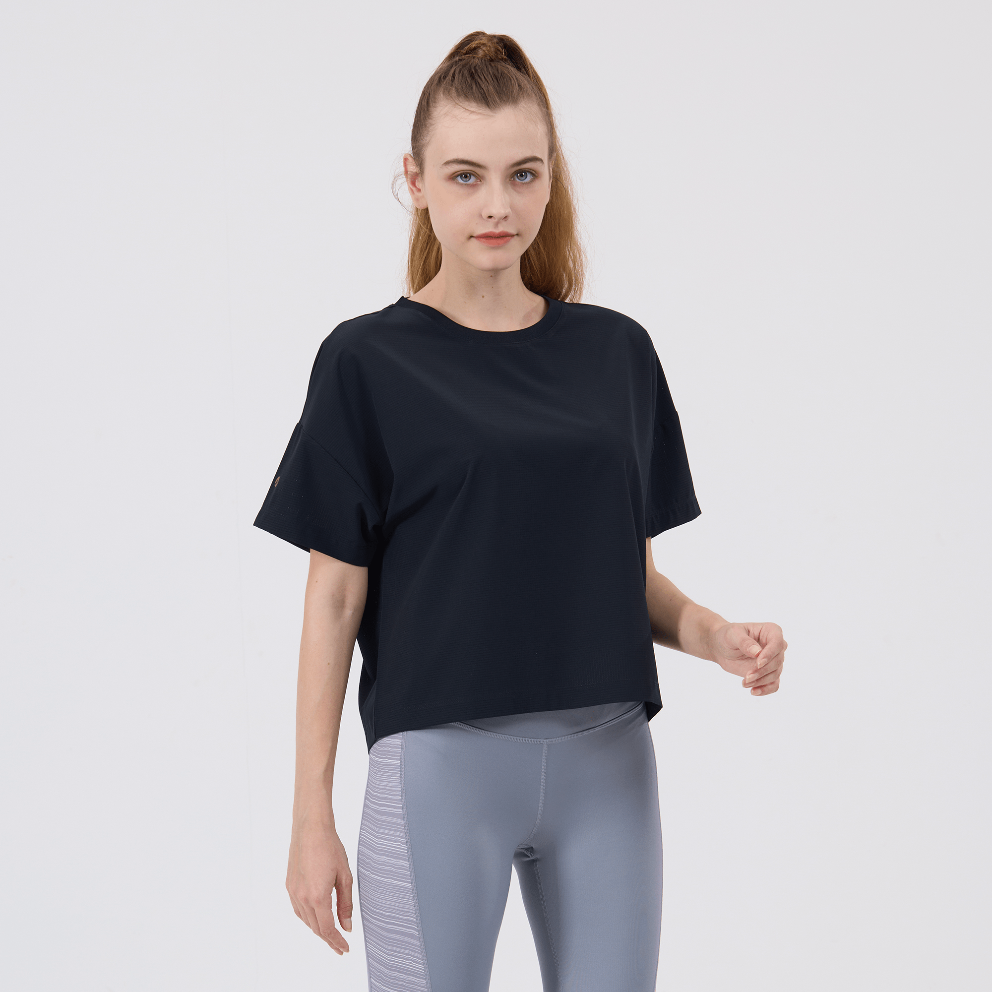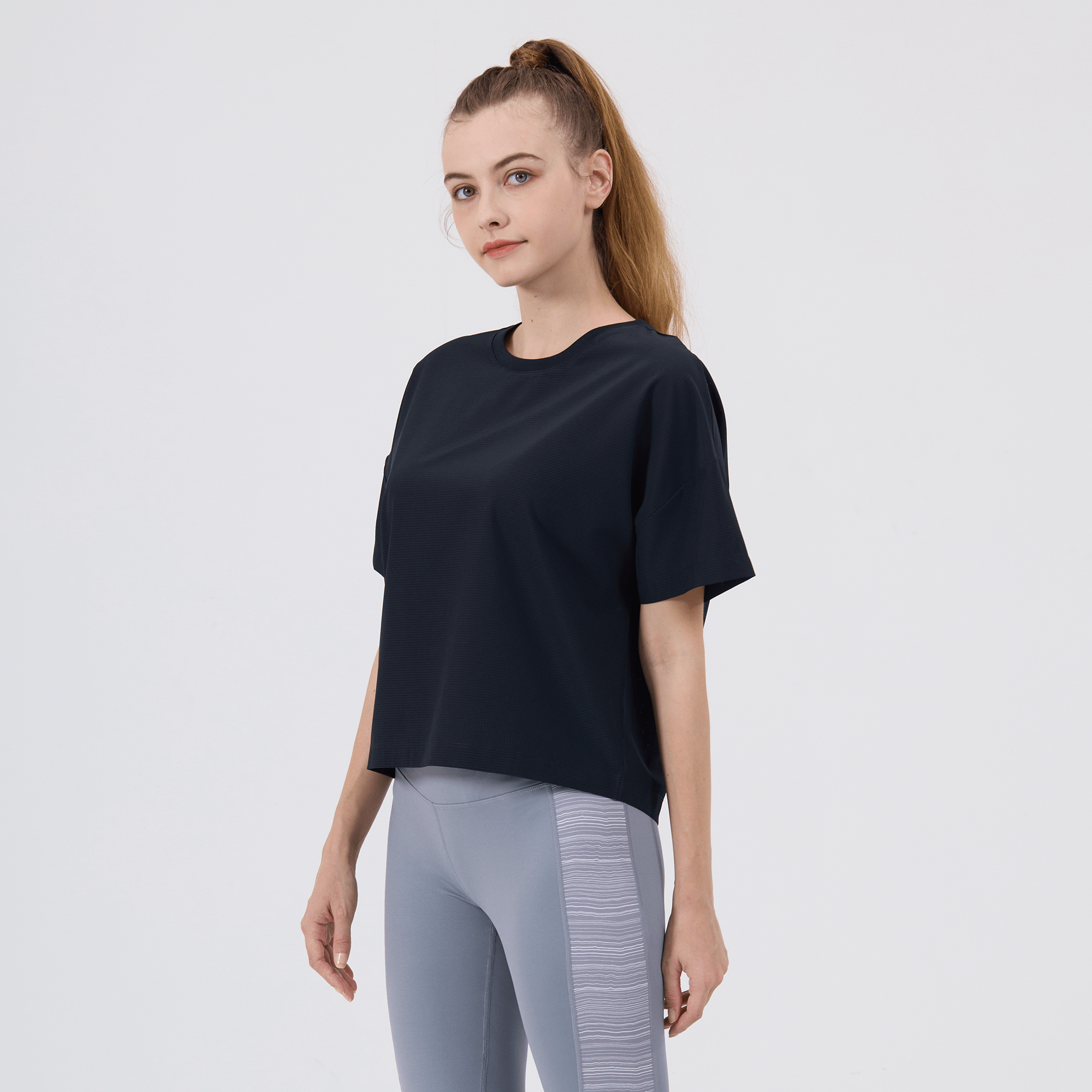 The women's Verve Box Car t-shirt offers a fresh take on casual wear with its unique design and comfortable fit. This T-shirt features a stretched woven fabric with a dobby texture pattern, adding a distinct touch to the simple silhouette. The boxy cut and cropped design make it a trendy choice for those looking for a modern, relaxed style. A self fabric collar provides a clean, finished look, while the back body overlap design with a vent opening adds an element of surprise and extra breathability. Made from a blend of 90% polyester and 10% spandex, this T-shirt combines durability with a slight stretch, ensuring it moves with you comfortably throughout the day.