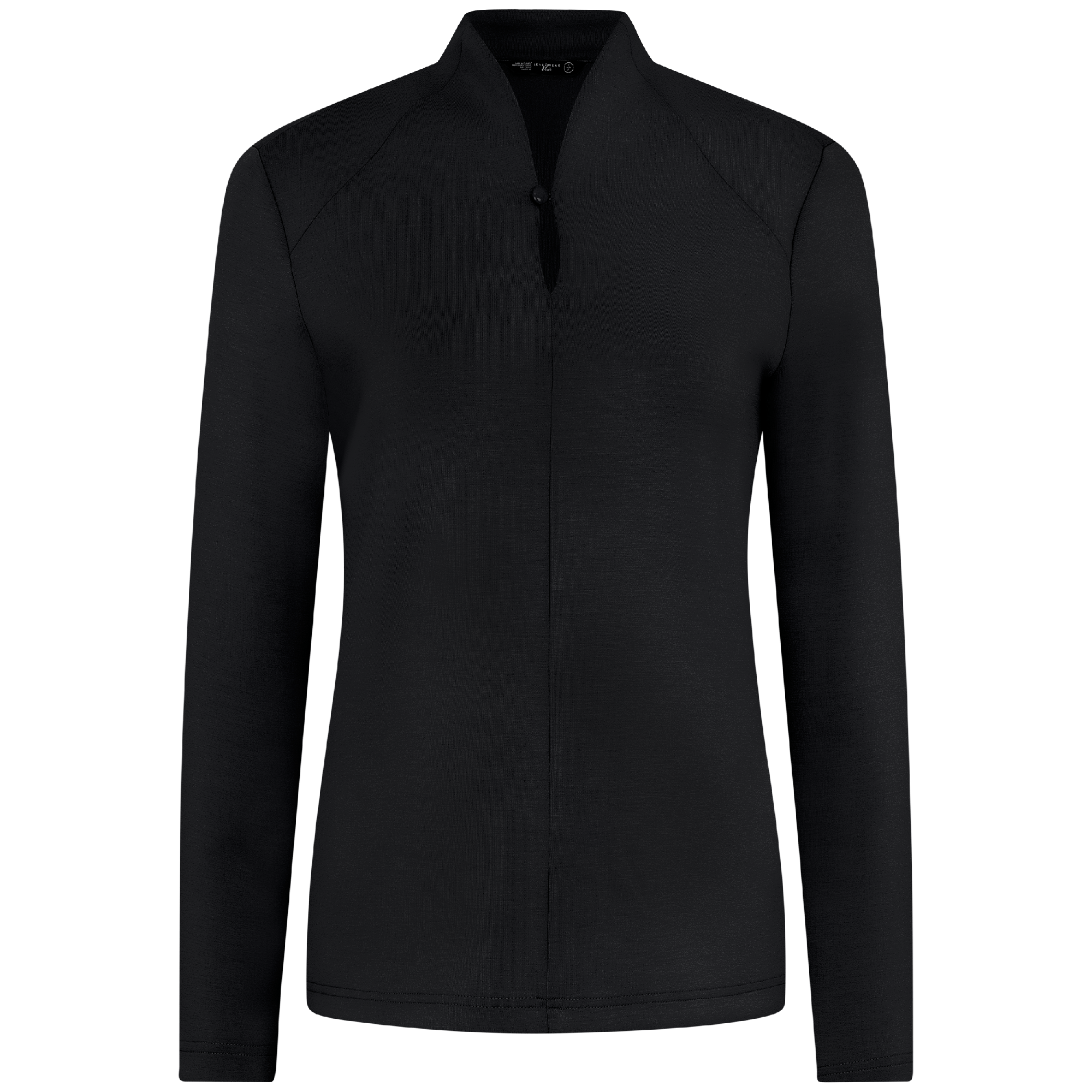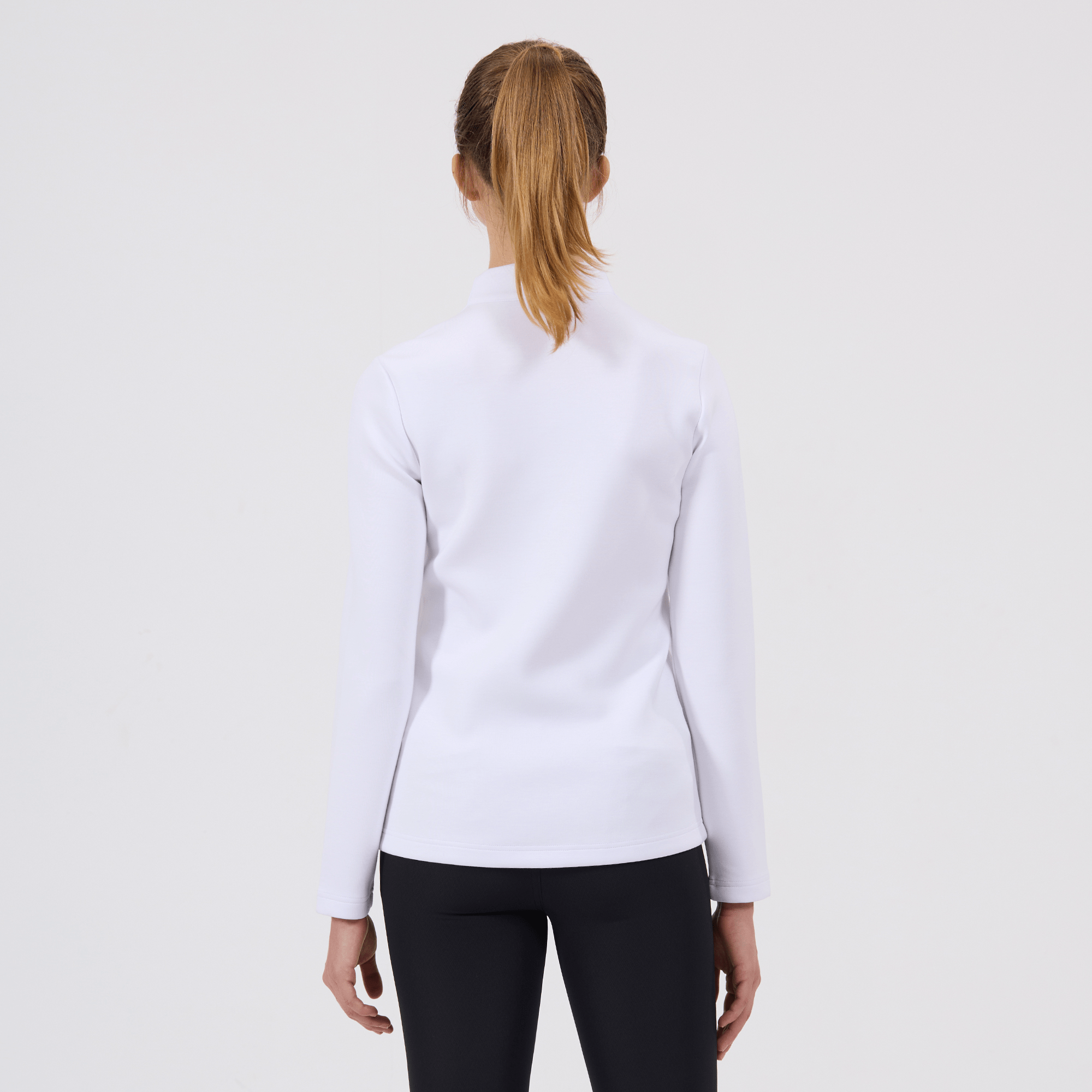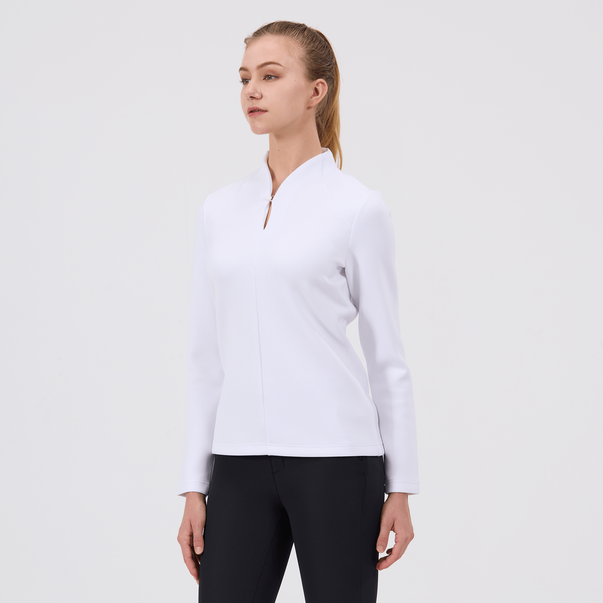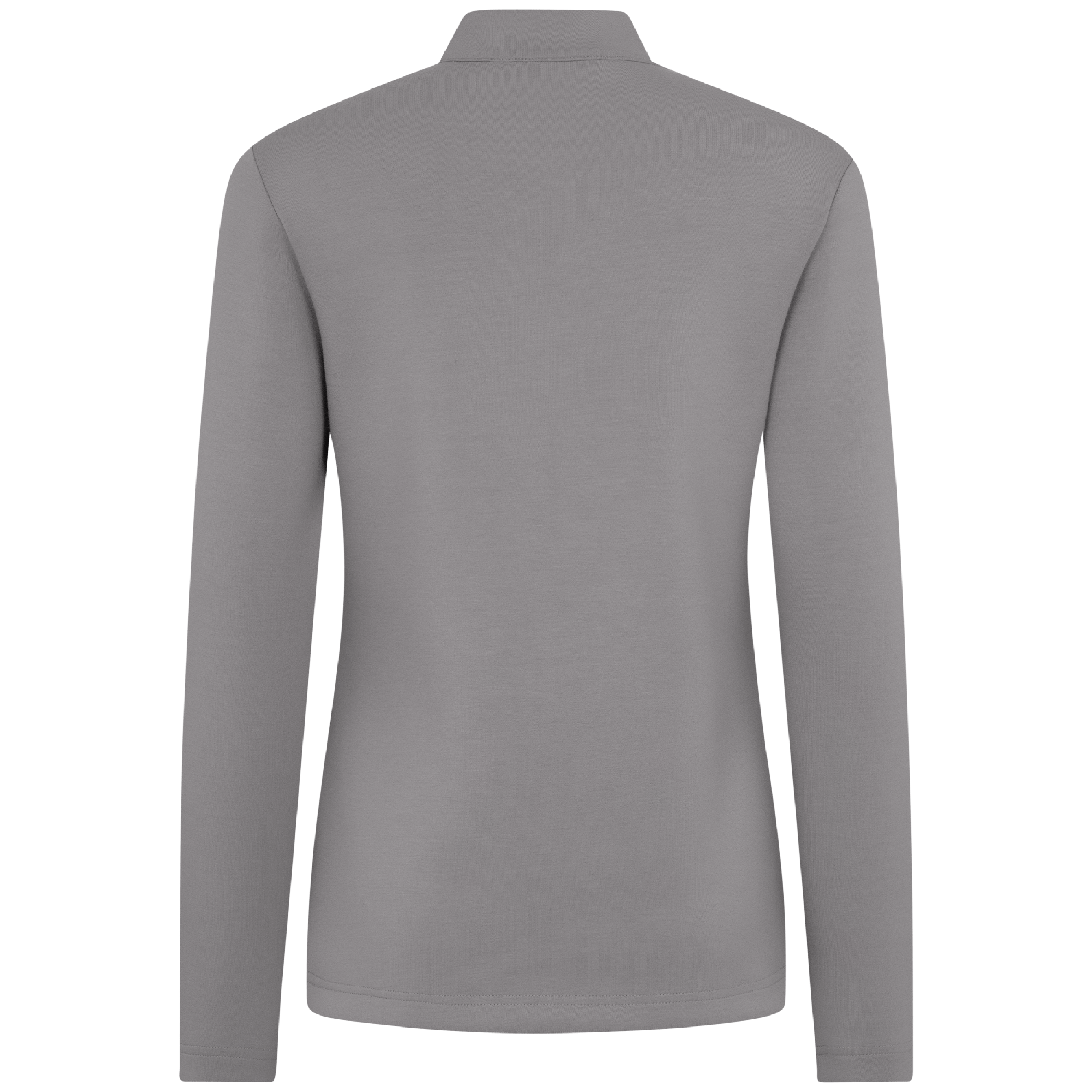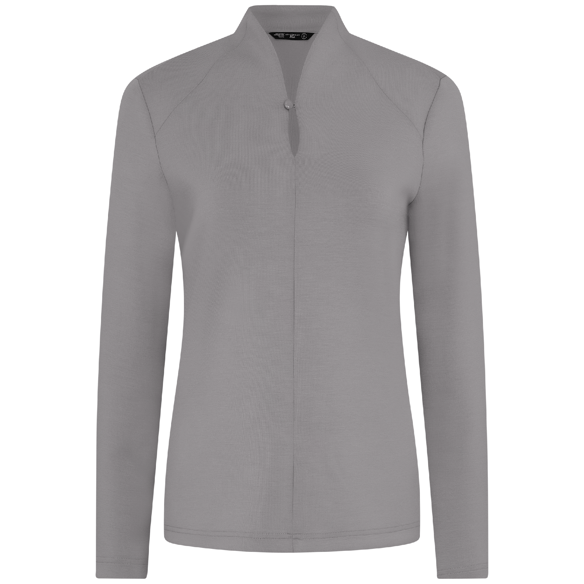 The Flaire is a stylish and environmentally conscious choice, crafted from a blend of 50% recycled polyester, 43% viscose, and 7% spandex. This unique midlayer is designed with attention to detail, featuring stylized shoulder seams that sweep elegantly from front to back, enhancing its sophisticated profile. The beautifully shaped mandarin collar with a button provides a refined and modern touch. A slight high-low hem adds a contemporary flair, offering a subtle variation in length that complements the sleek design.