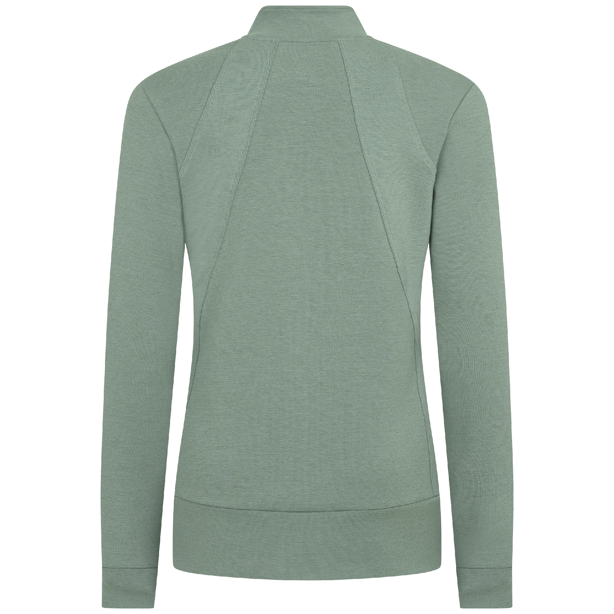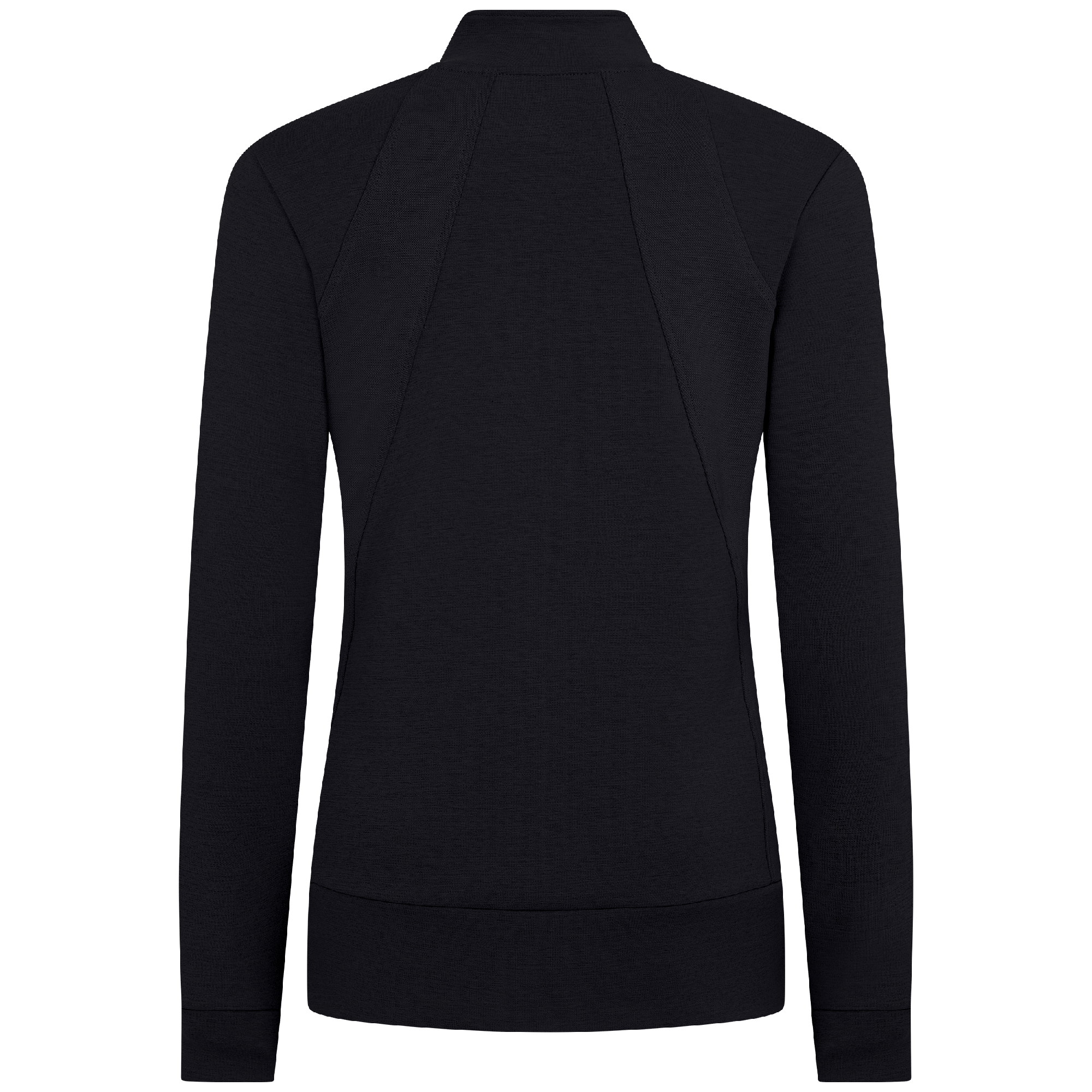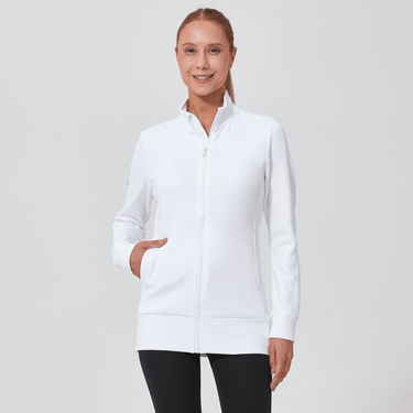 The Shine Full Zip is expertly crafted for those who appreciate a seamless blend of sophistication and functionality. Featuring an elongated hip-length silhouette, this piece enhances the figure while providing ample coverage and warmth. Its design includes stylized seaming and textured paneling, elevating the classic full zip with elegant detailing. Integrated inseam pockets maintain the jacket's streamlined look while offering convenient storage. The self-fabric sleeve cuffs and body band contribute to a snug, comfortable fit that adapts to your movements throughout the day. Constructed from a plush blend of 79% cotton, 17% polyester, and 4% spandex, the Shine Full Zip is versatile enough for casual wear or more formal occasions, ensuring both comfort and style.