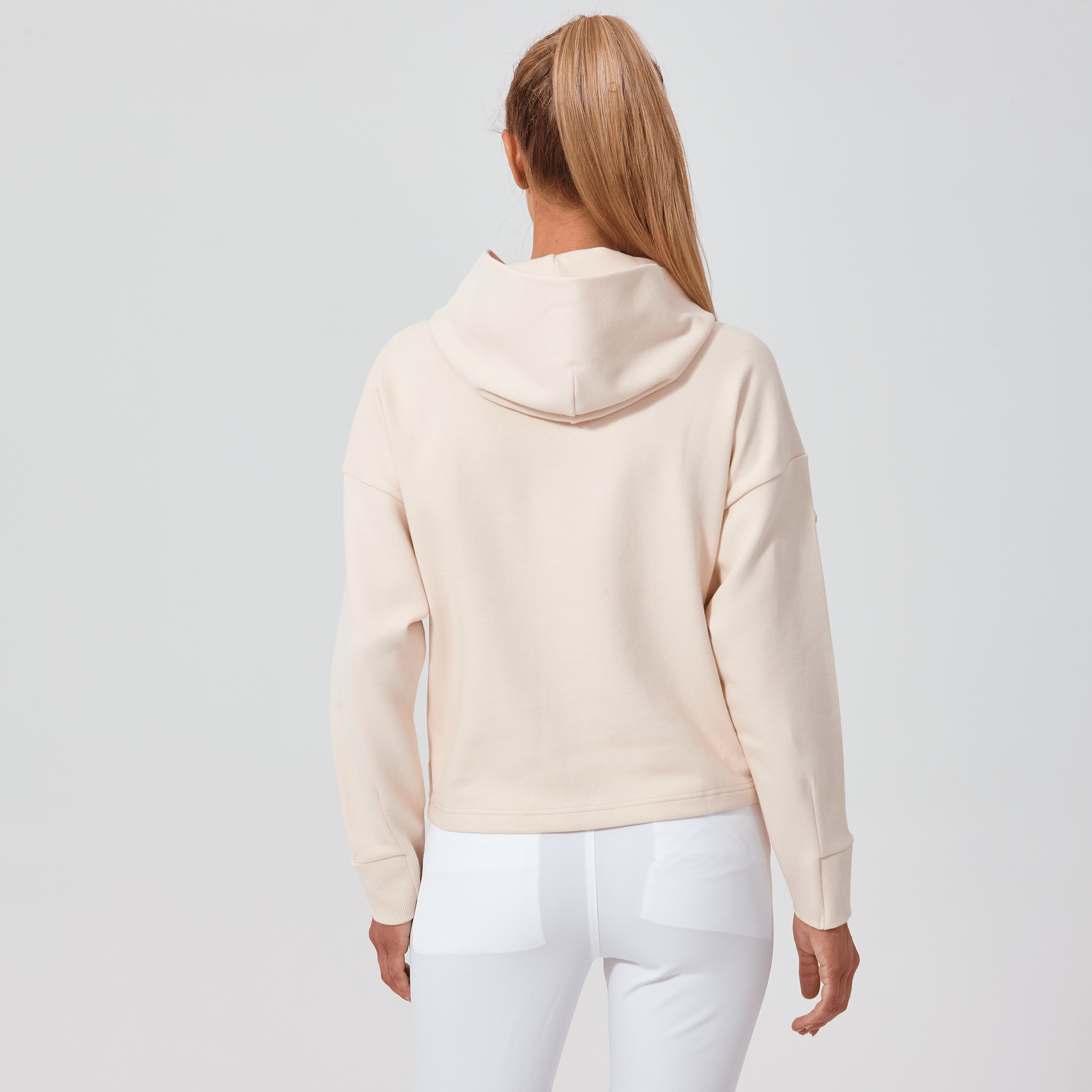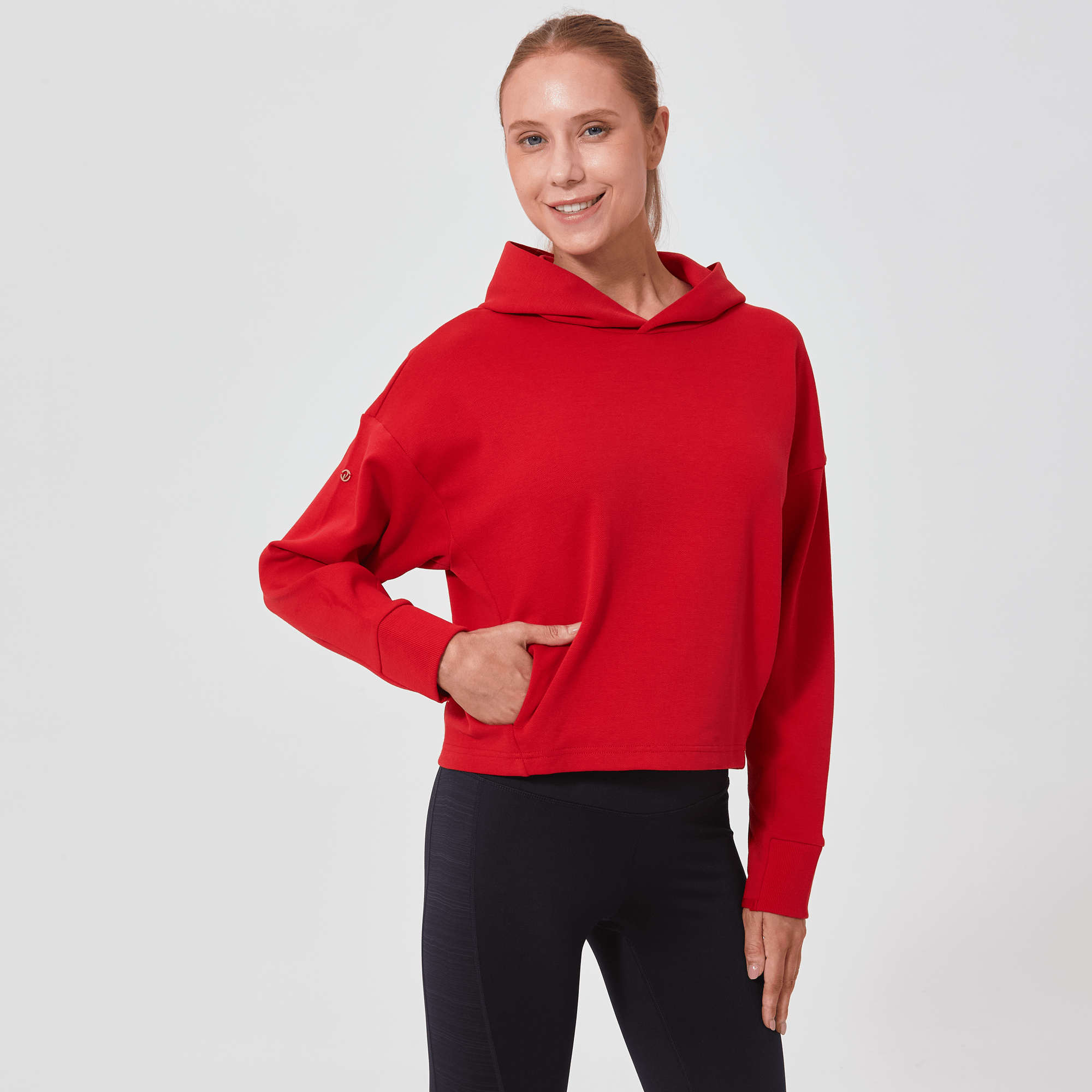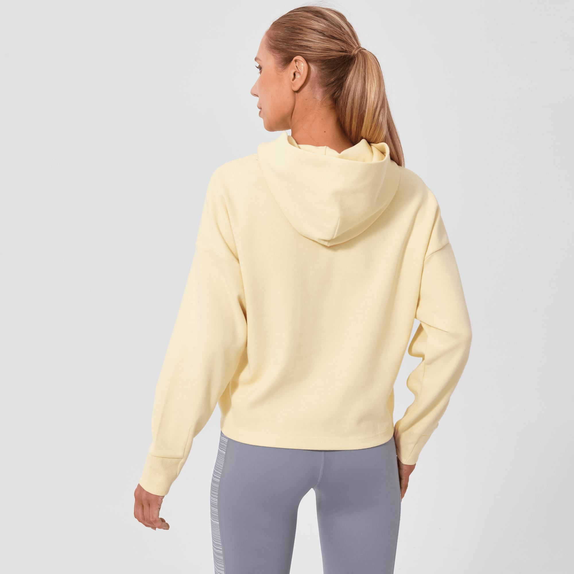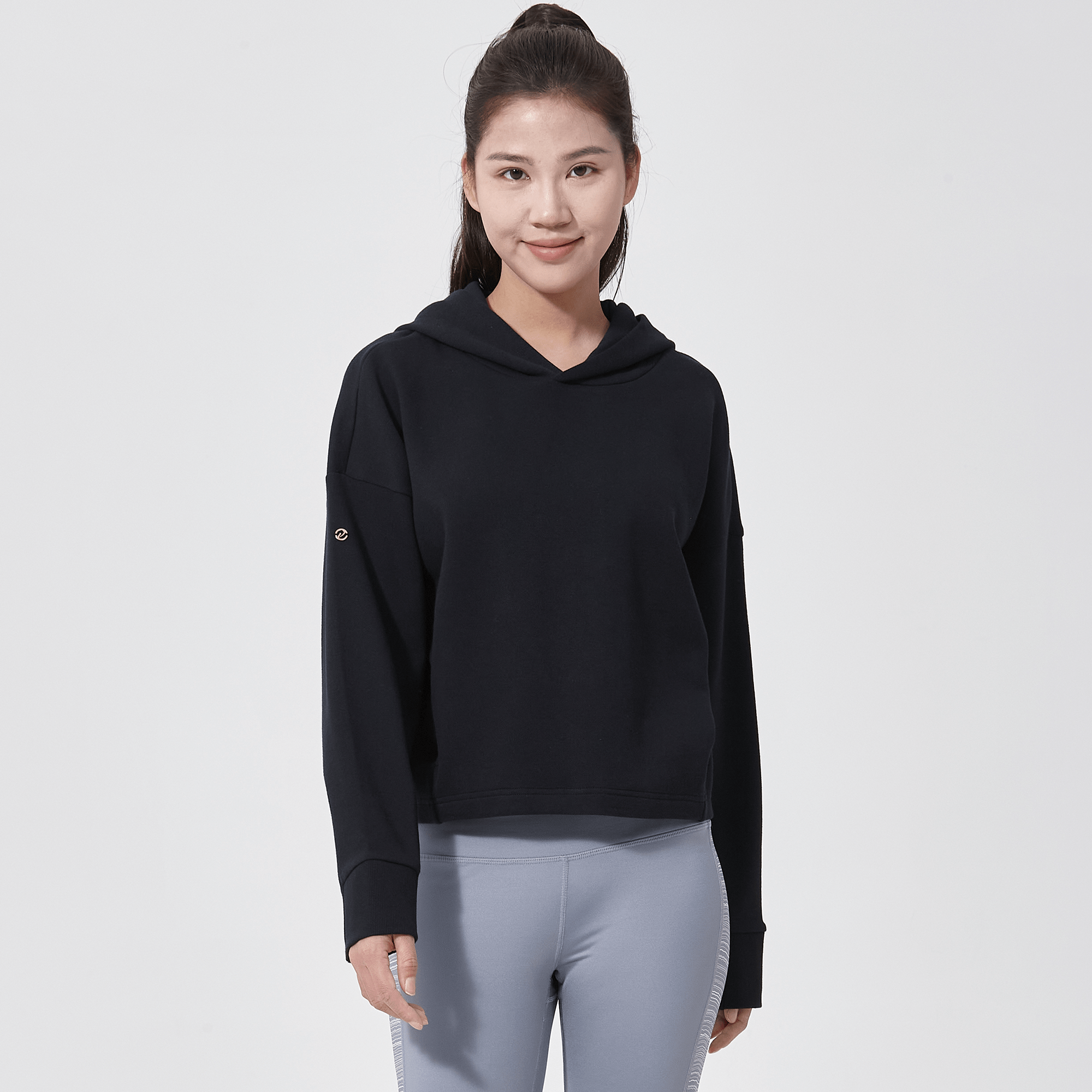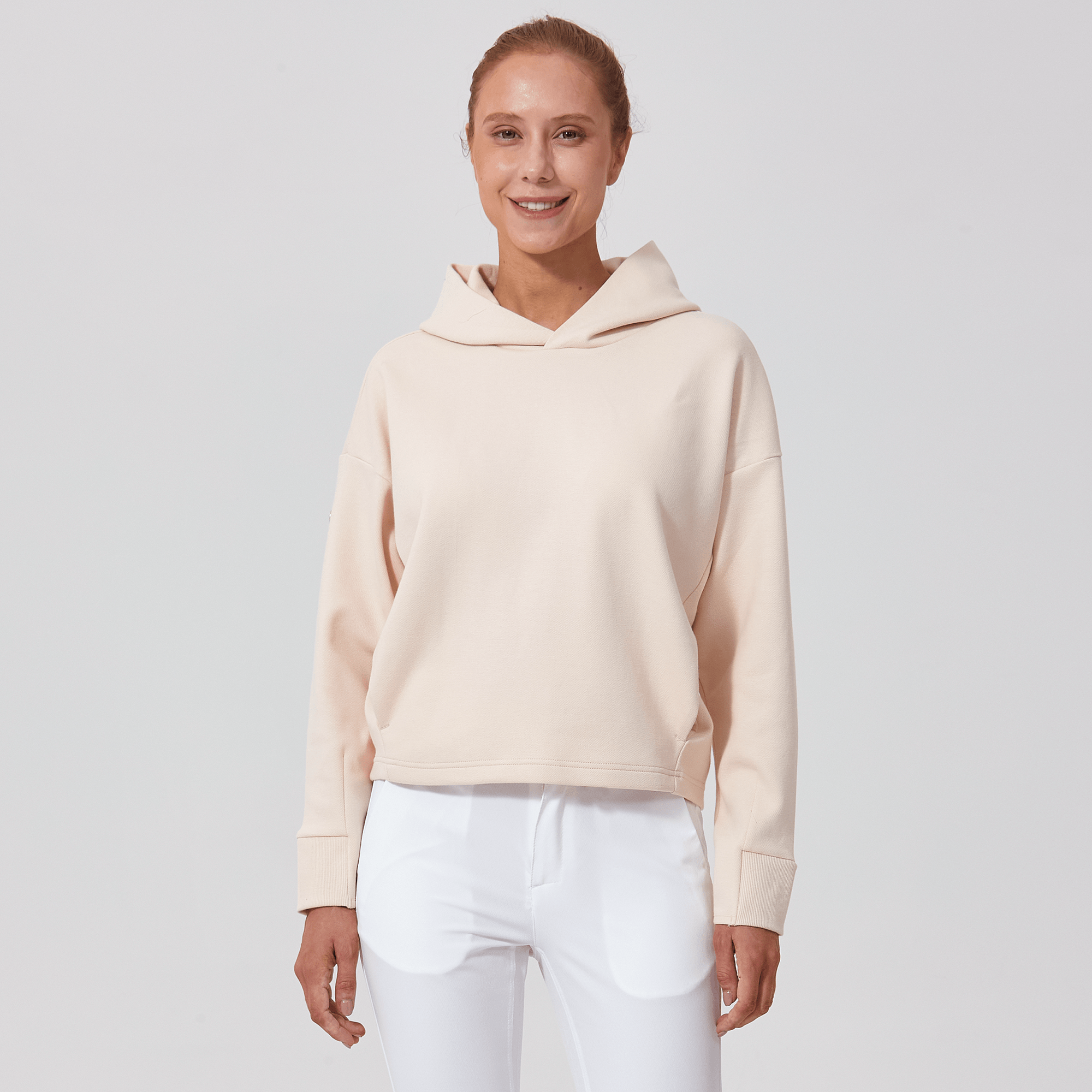 Introducing a piece that combines modern style with ultimate comfort: the latest addition to our collection features a drop shoulder and cropped body silhouette for a contemporary, relaxed look. The design includes a single panel double-layered hood that adds a sleek, cozy touch, perfect for cooler days. Enhanced with forward shoulder and side seams, this top offers a flattering fit while incorporating inseam pockets for functionality without compromising style. The sleeves are thoughtfully designed with ribbed trims, elastic binding, and darted seams, ensuring a snug fit that moves with you. Crafted from a soft blend of 79% cotton, 17% polyester, and 4% spandex, this garment provides stretch, comfort, and durability, making it a versatile staple for any casual wardrobe.