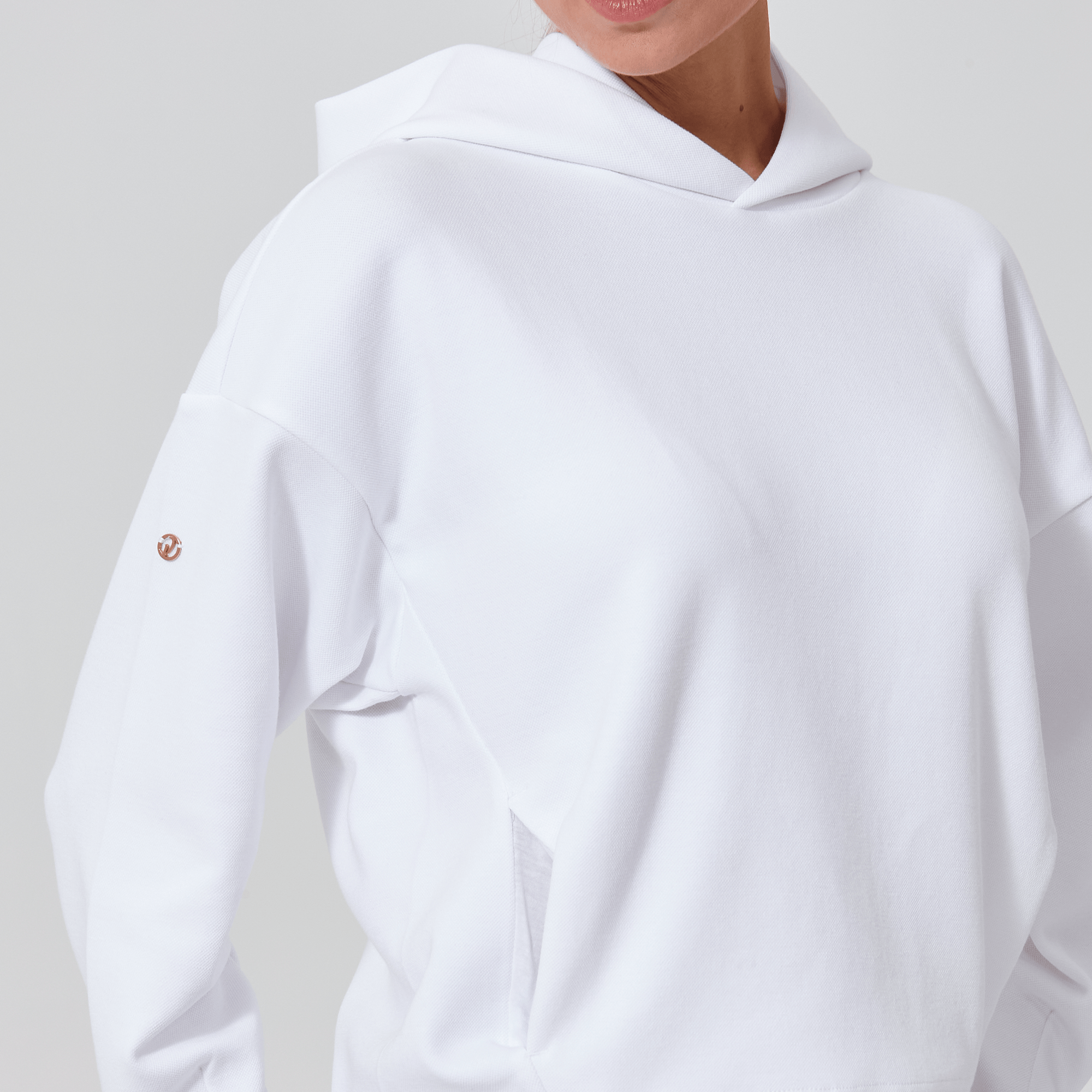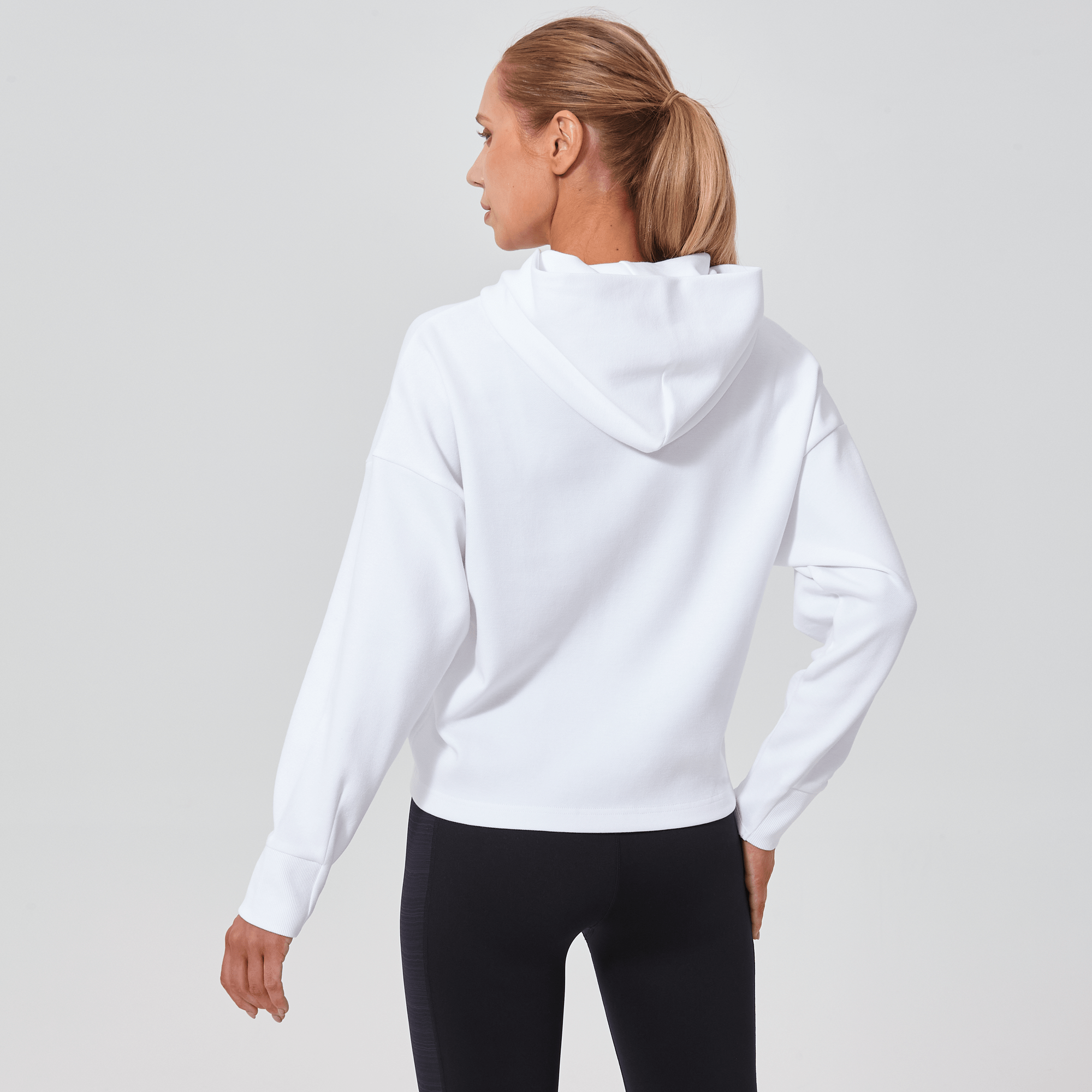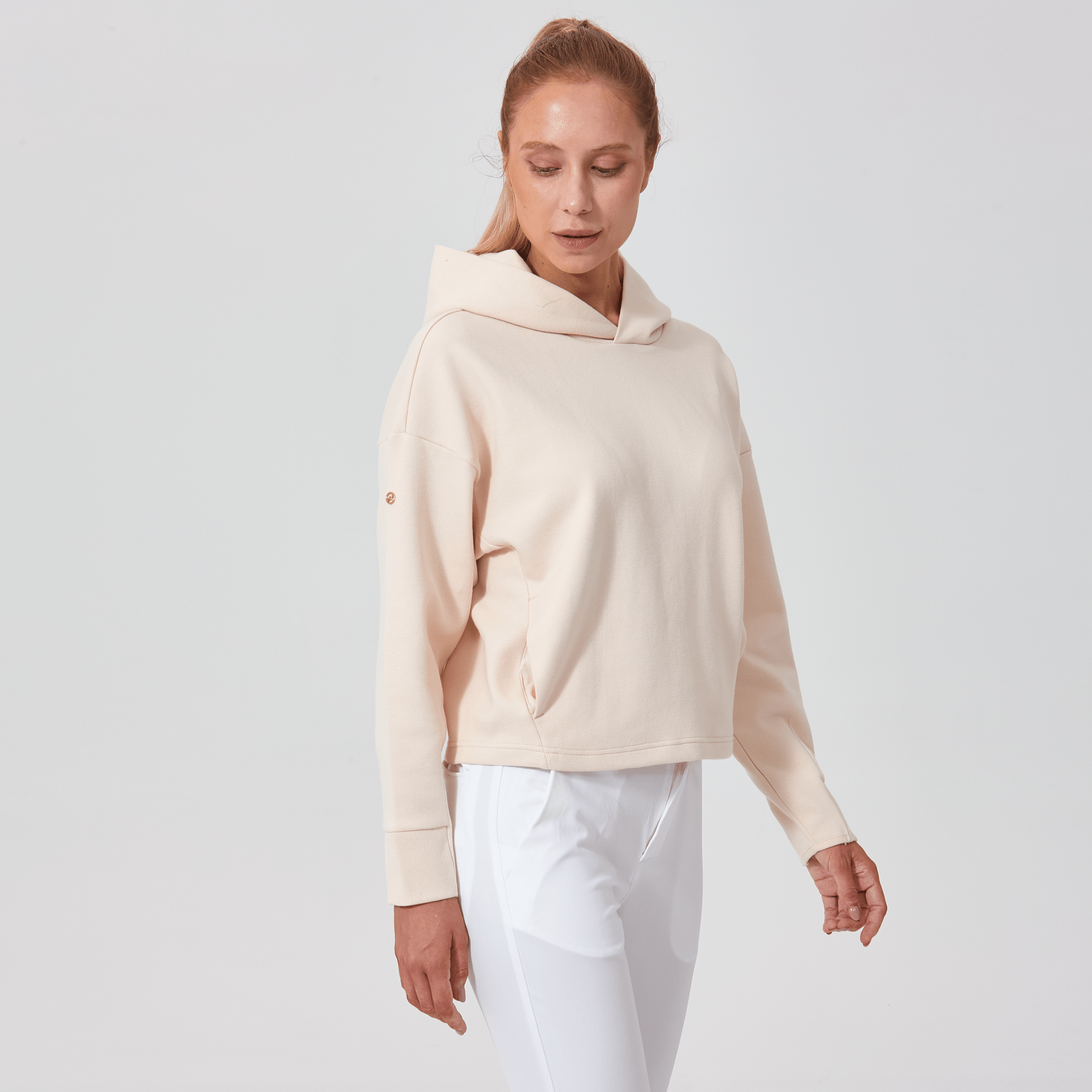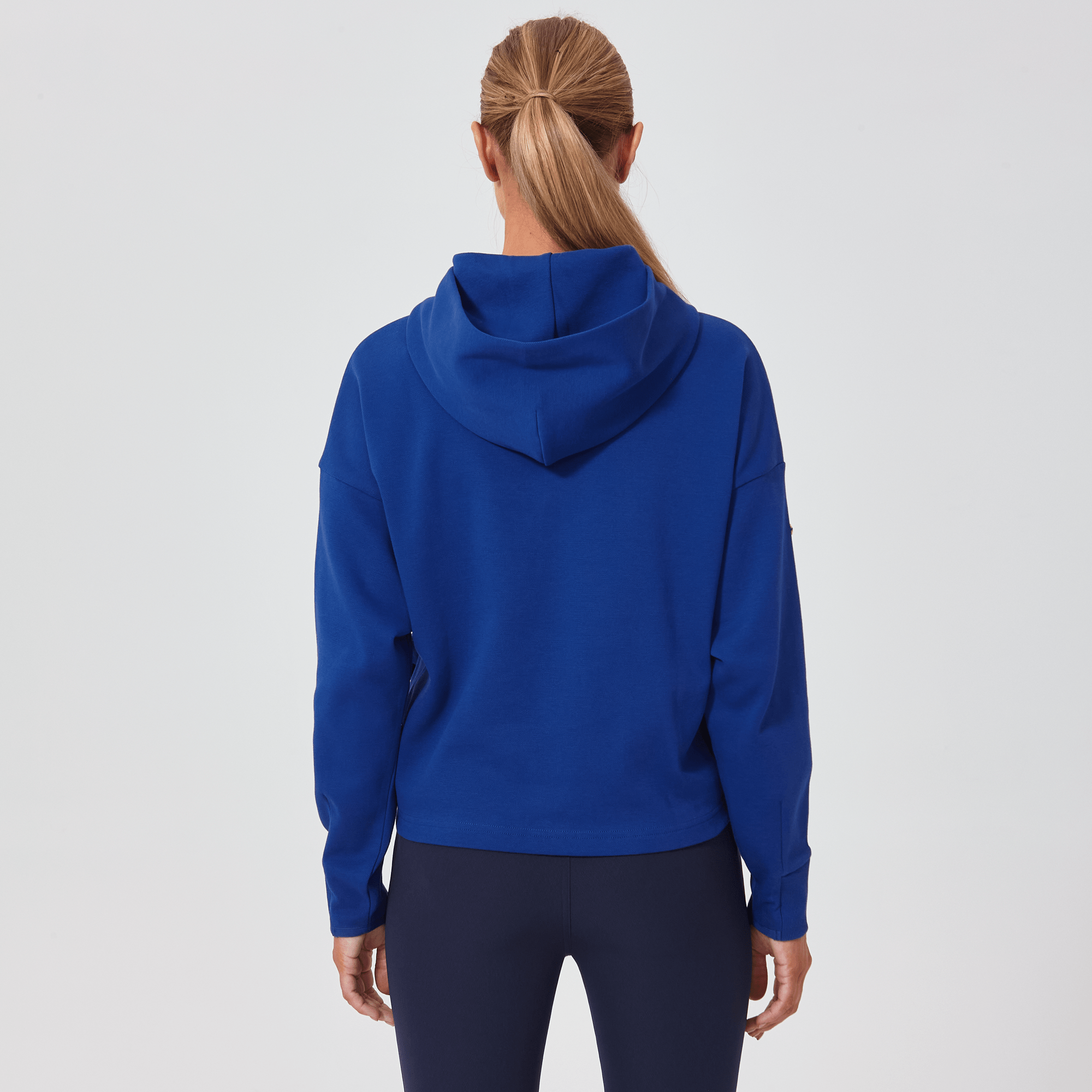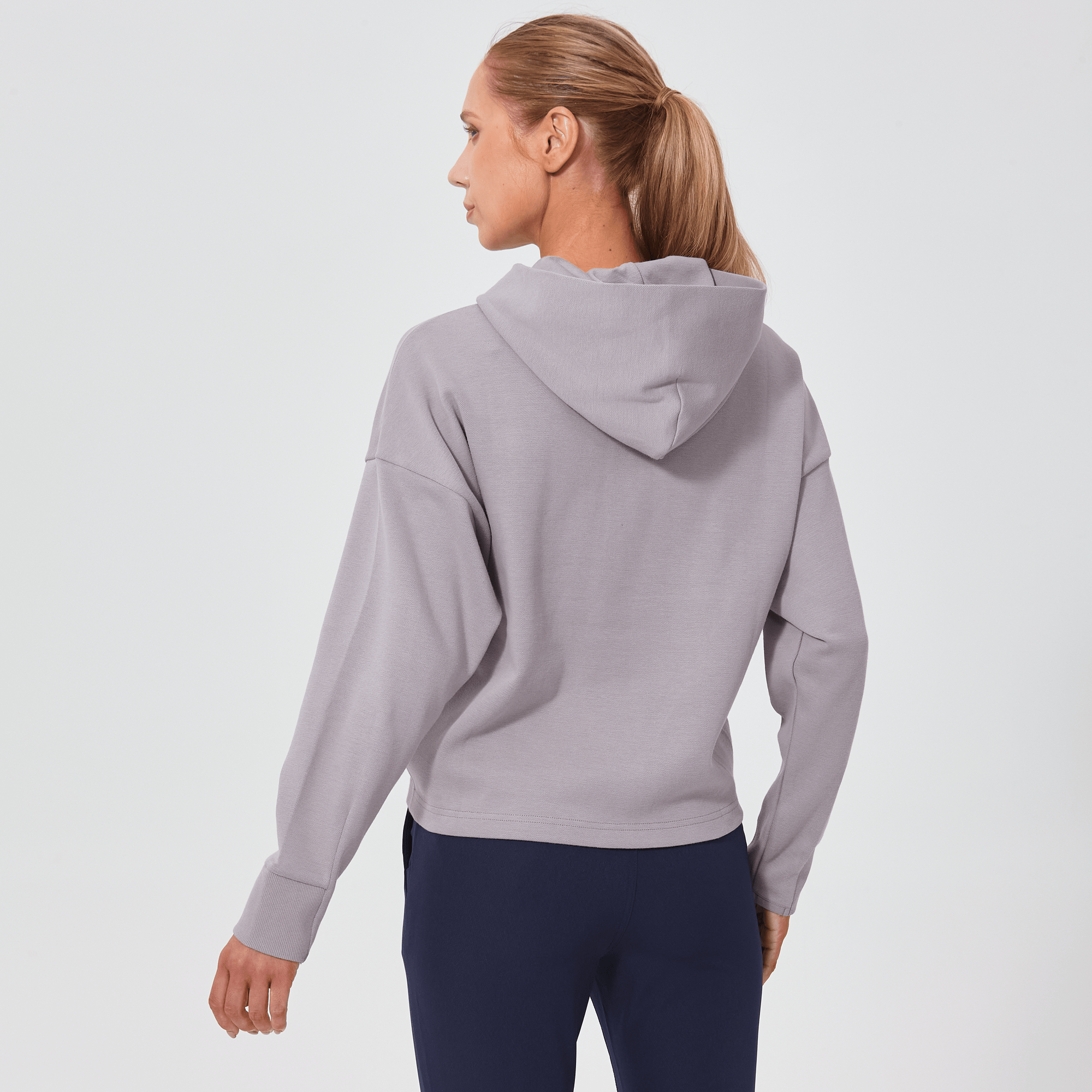Introducing a piece that combines modern style with ultimate comfort: the latest addition to our collection features a drop shoulder and cropped body silhouette for a contemporary, relaxed look. The design includes a single panel double-layered hood that adds a sleek, cozy touch, perfect for cooler days. Enhanced with forward shoulder and side seams, this top offers a flattering fit while incorporating inseam pockets for functionality without compromising style. The sleeves are thoughtfully designed with ribbed trims, elastic binding, and darted seams, ensuring a snug fit that moves with you. Crafted from a soft blend of 79% cotton, 17% polyester, and 4% spandex, this garment provides stretch, comfort, and durability, making it a versatile staple for any casual wardrobe.