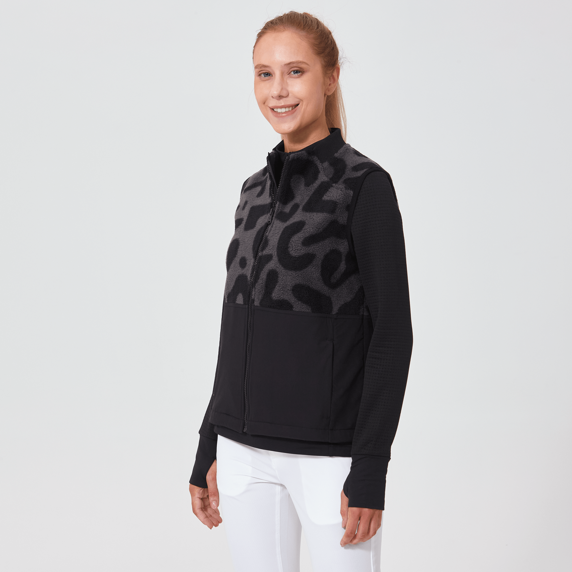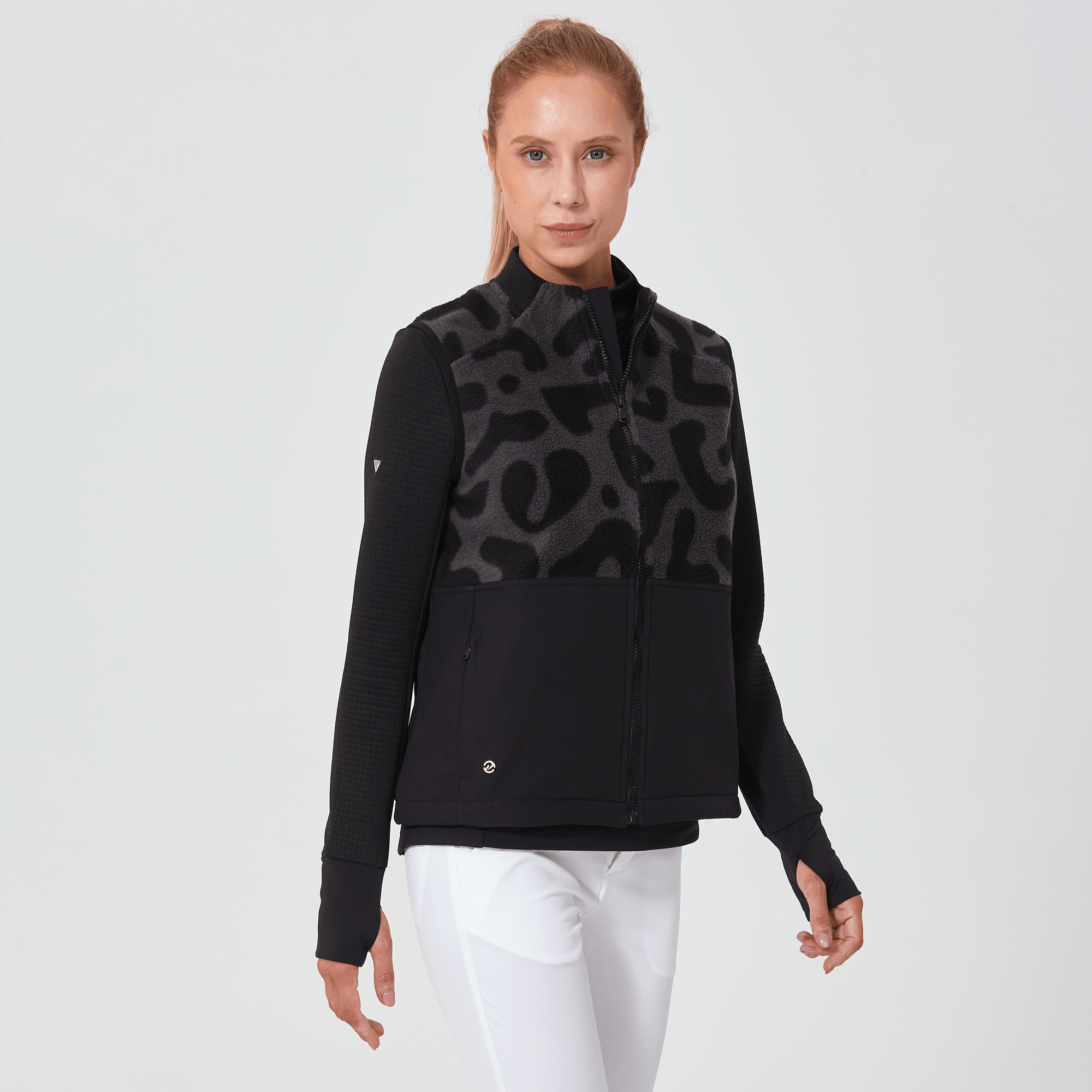 The Spot Vest is crafted for those who value both practicality and aesthetic appeal. Made with contrast stretch nylon from a resilient blend of polyester and spandex, this vest offers flexibility and comfort, adapting effortlessly to your movements. It features a sleek ribbed collar trim and elastic binding at the armholes for a snug, secure fit that effectively keeps the elements out. Front inseam zipper pockets provide convenient and safe storage for essentials, while the bungee cord at the body hem allows for customizable fit adjustments. Constructed entirely from 100% polyester, the Spot Vest is ideal for layering over your favorite tops, providing extra warmth and coverage without adding bulk.