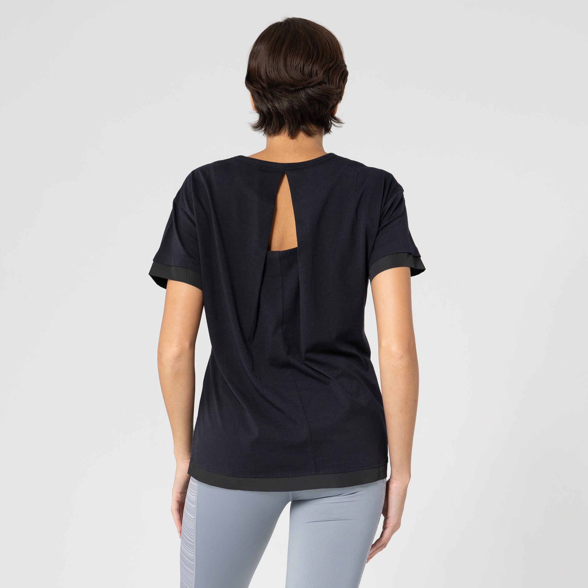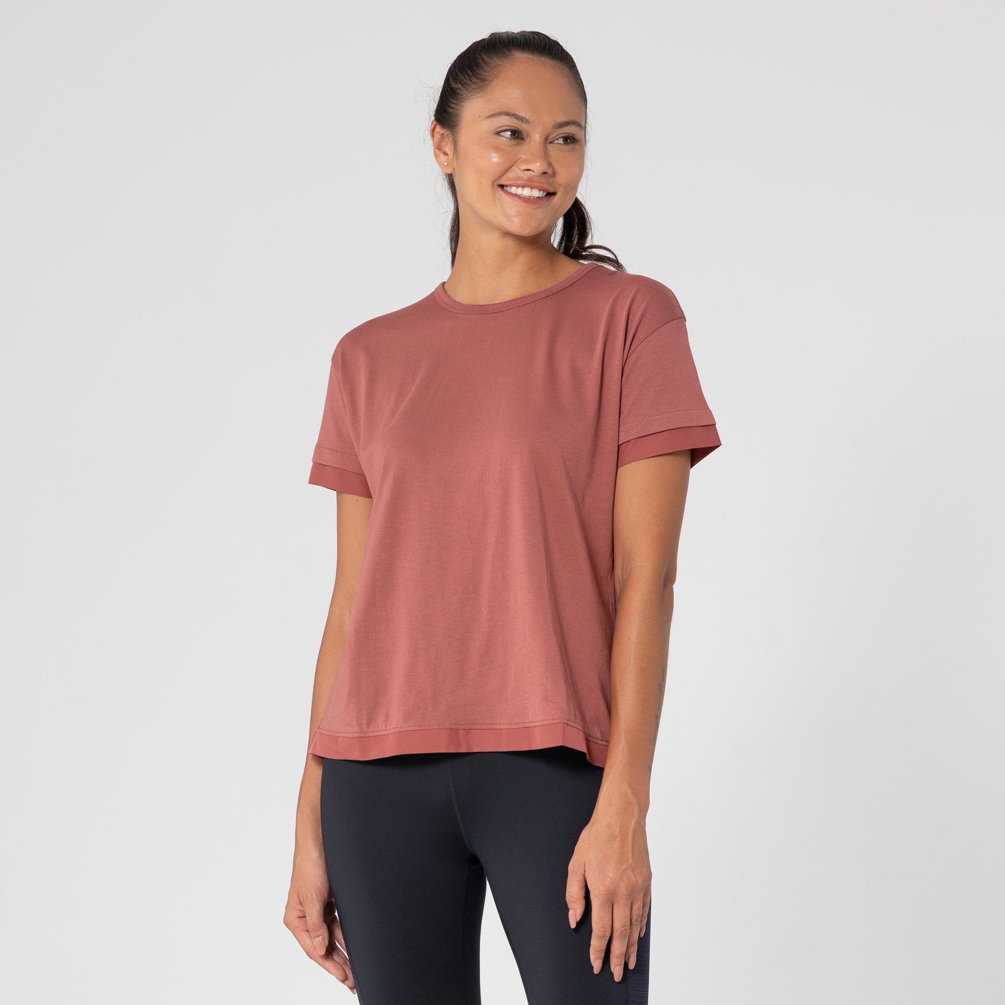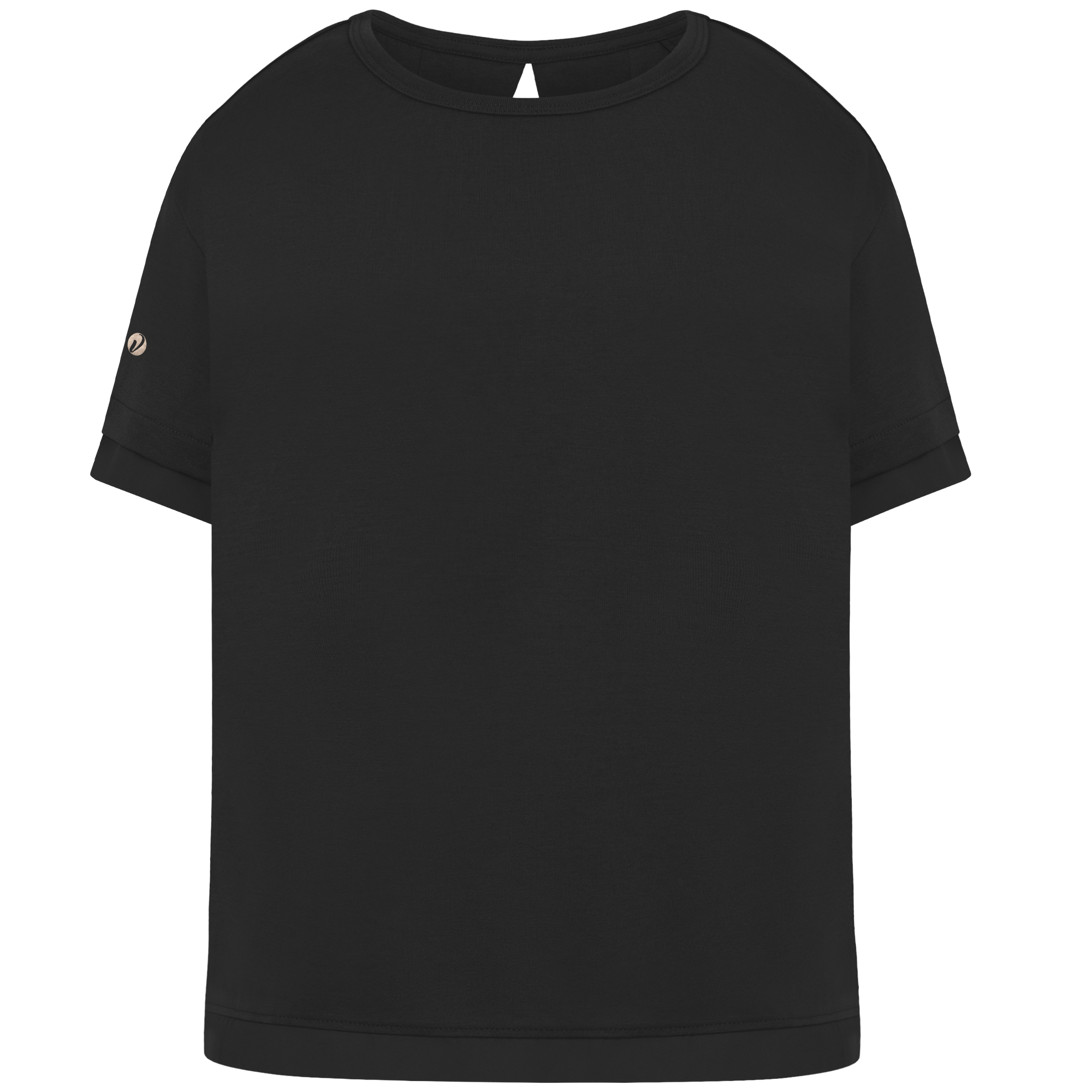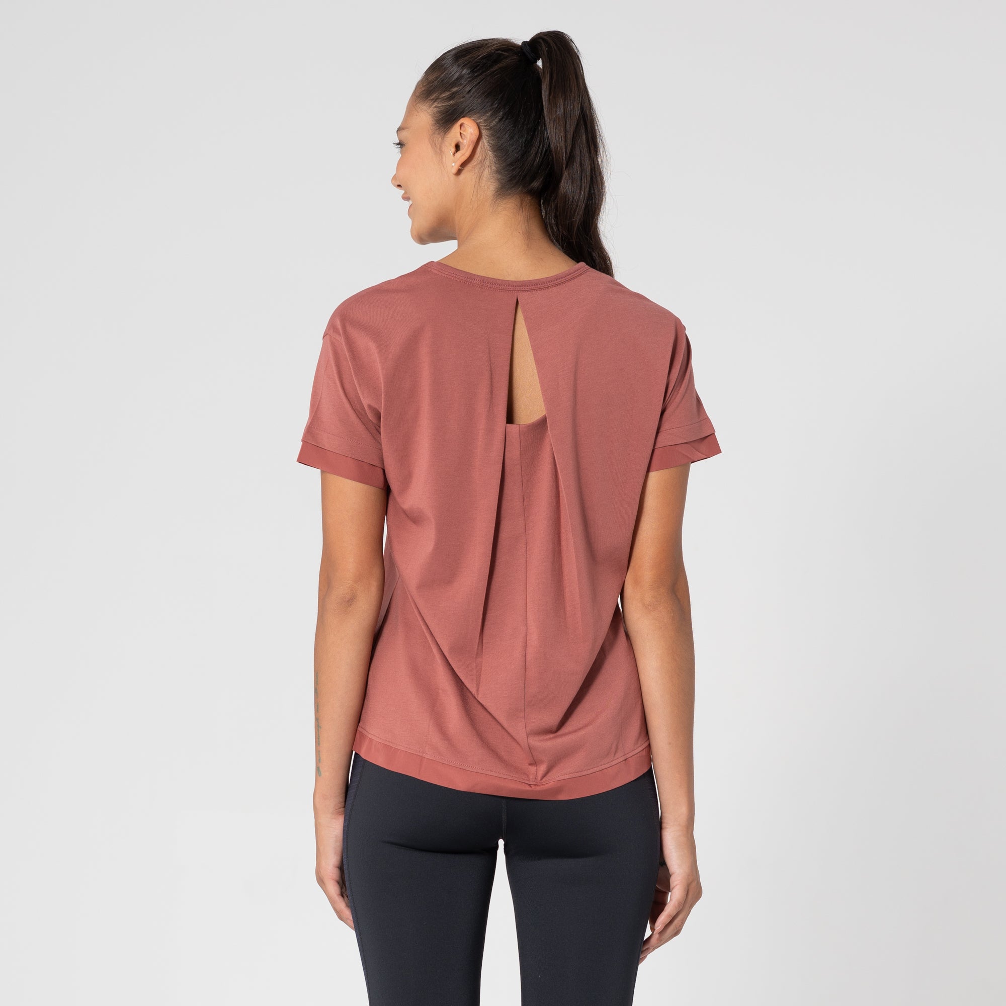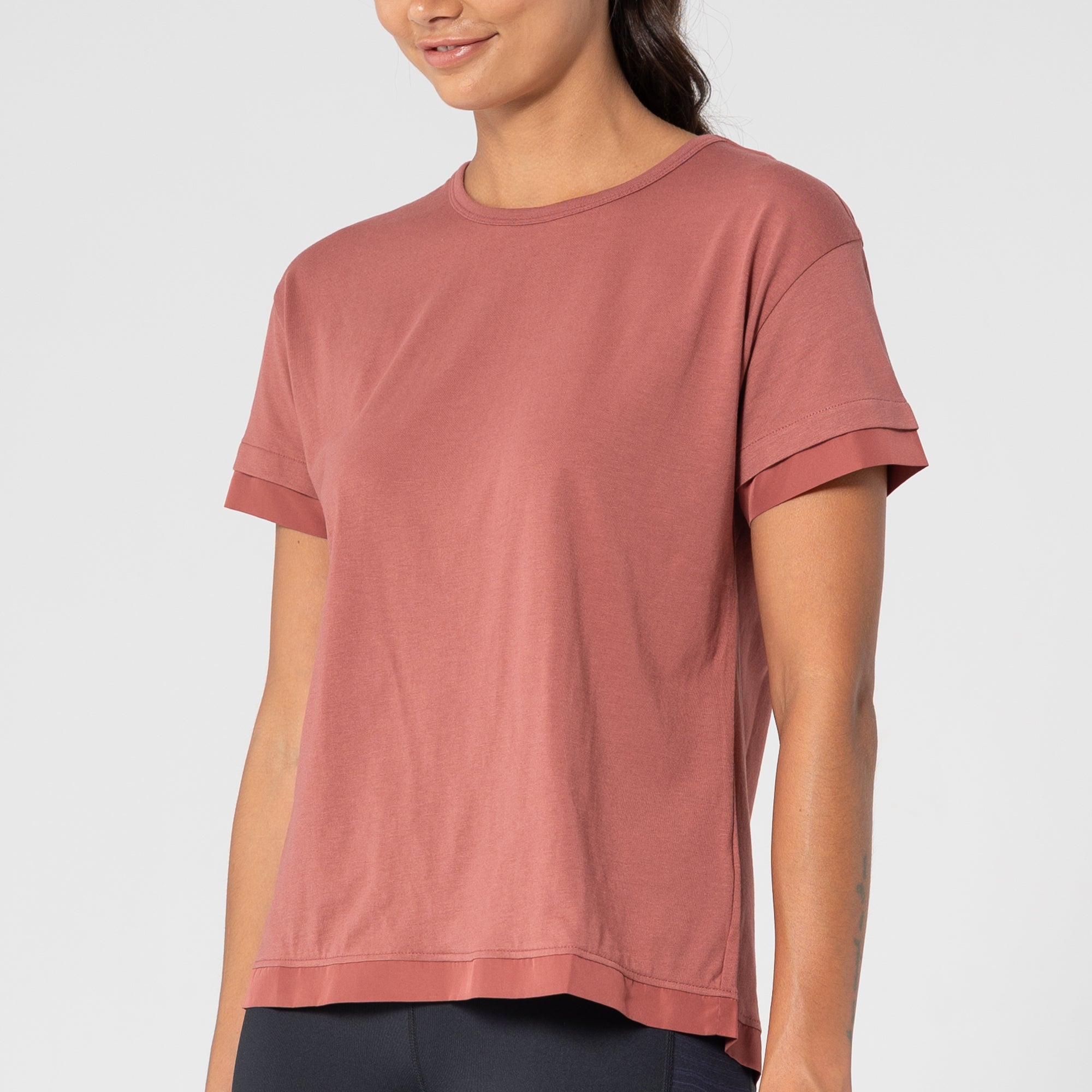 The Tulip top features a drop shoulder flowy silhouette that drapes gracefully, offering a flattering and comfortable fit for all body types. The open pleat design at the center back introduces an element of refined detail, adding visual interest and enhancing the top's airy feel. Contrasting semi-dull woven trim at the sleeve openings and body hem frames the piece with a subtle yet distinct touch, complementing the overall design. Made from a blend of 65% polyester and 35% cotton, the Tulip is soft to the touch and durable, perfect for both relaxed days and evenings out.